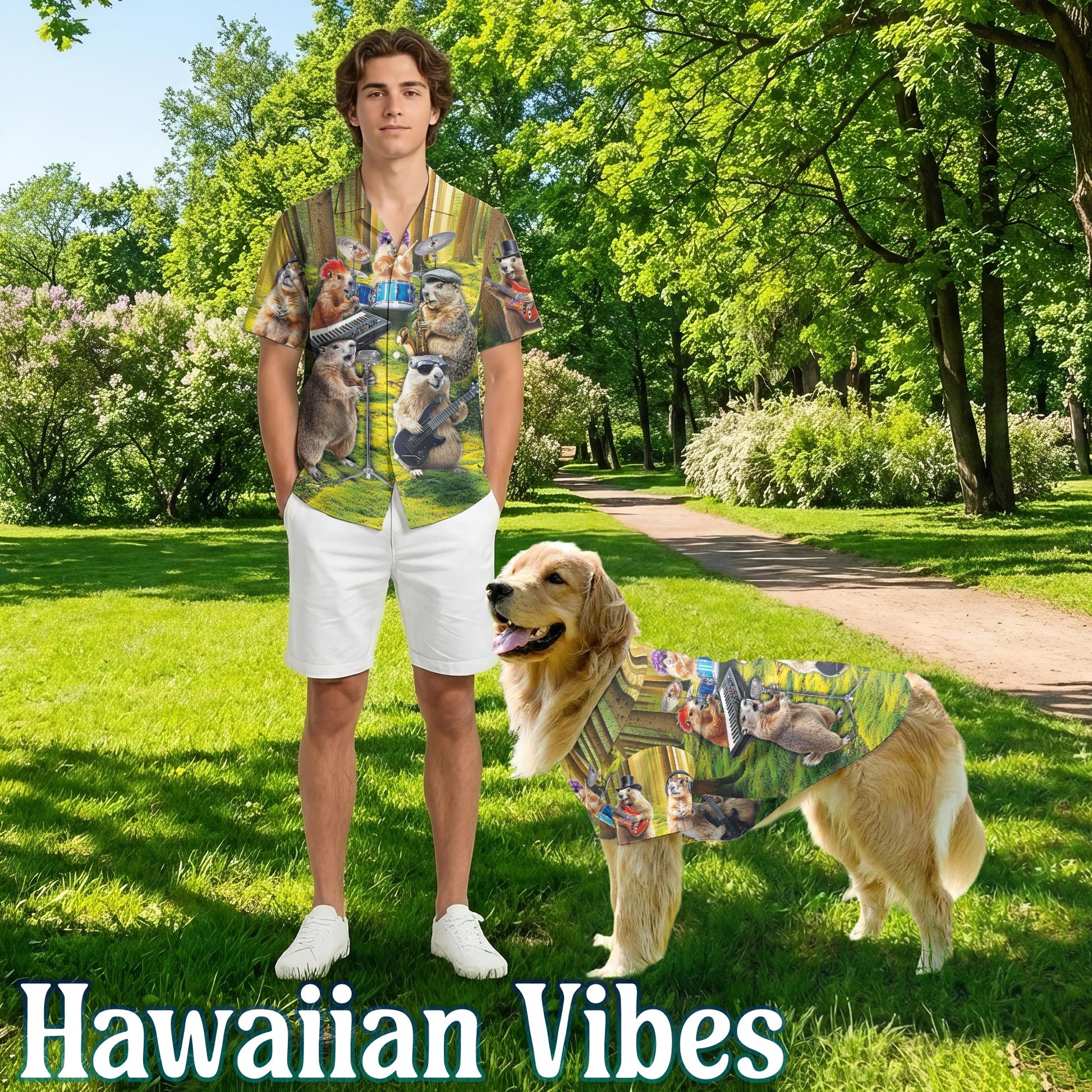 Netecom Matching Funny Musical Groundhog Aloha Hawaiian Shirt for Dog and Owner, Aloha Summer Shirt, Groundhog Music Print Outfit for Pet and Human, Beach Vacation Casual Wear
