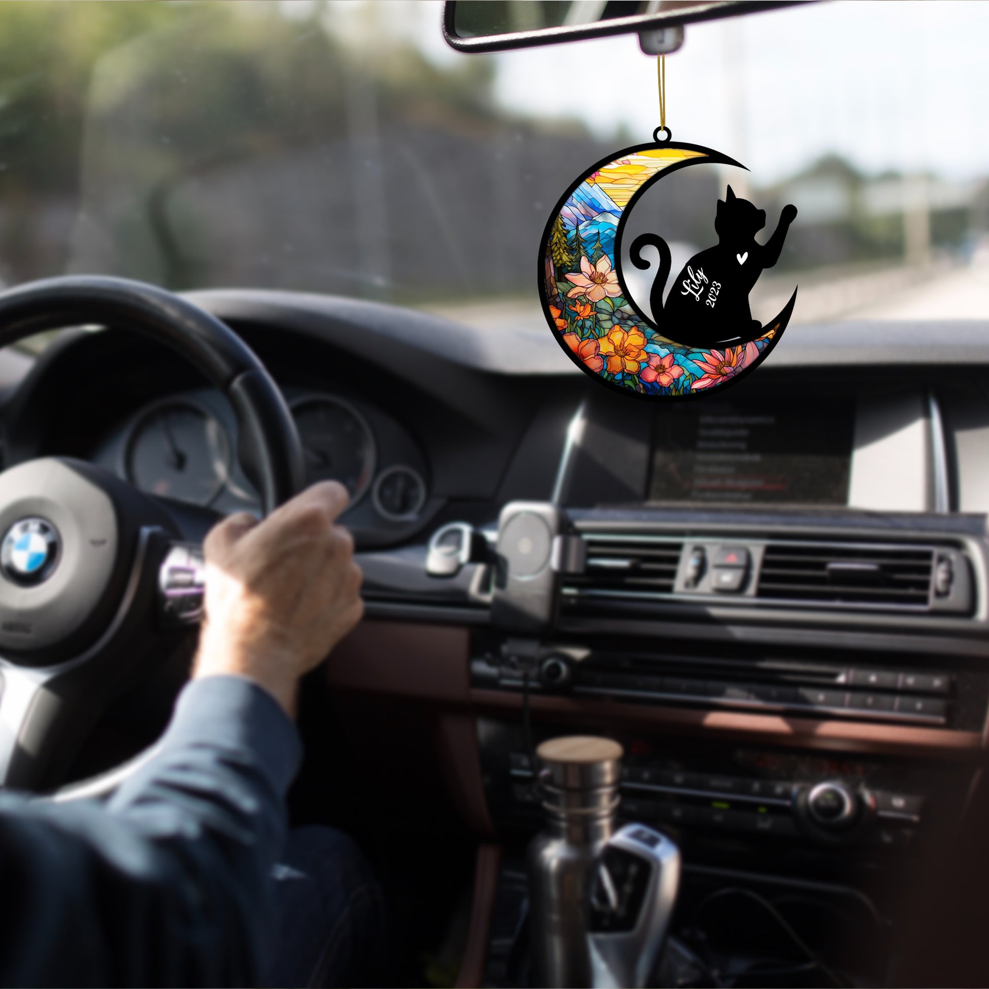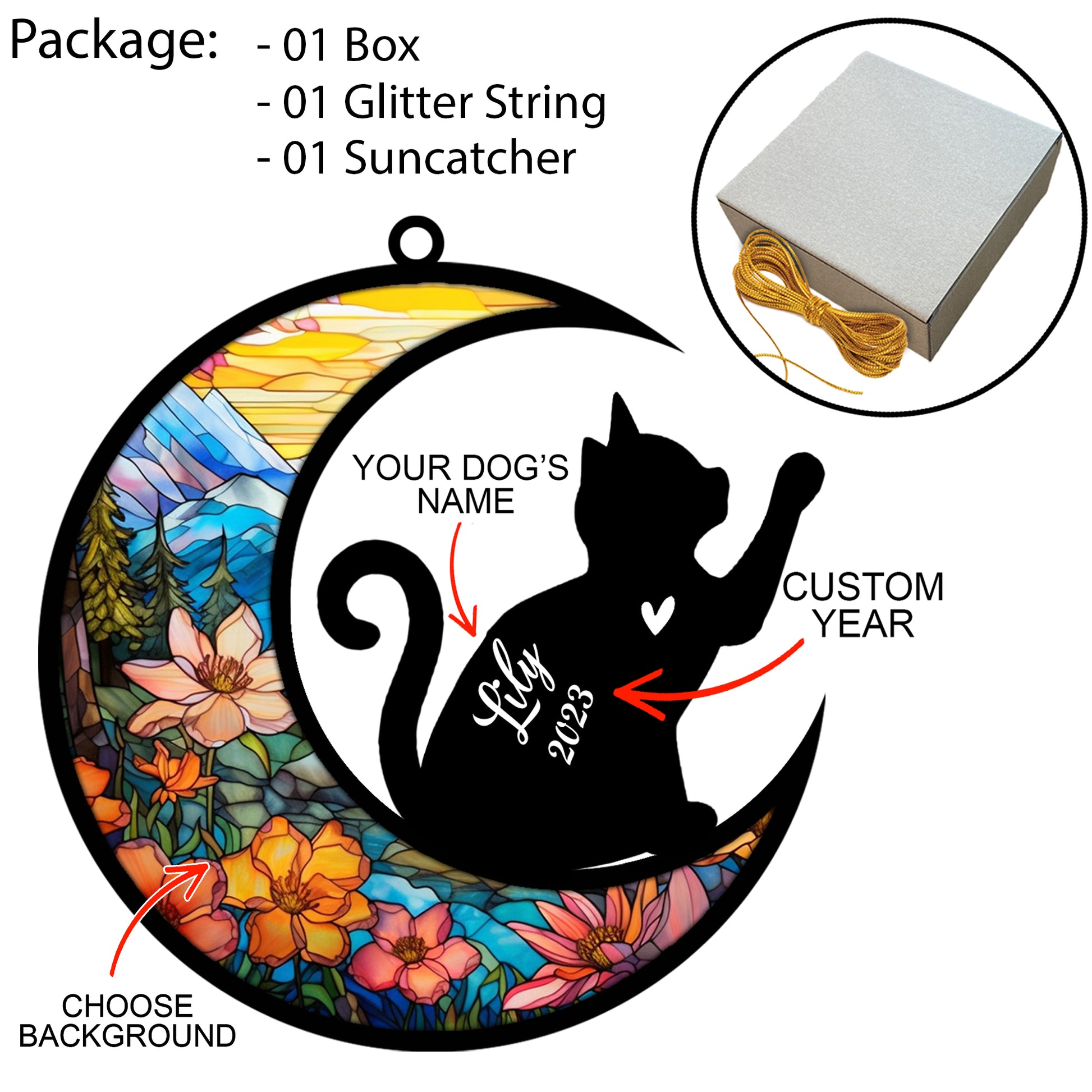 Netecom Personalized Cat Memorial Suncatcher, Custom Cat Breeds Suncatcher with Name & Date, Pet Loss Suncatcher, Stained Glass, Gifts for Cat Lovers, Christmas Cat Ornament Window Hangings