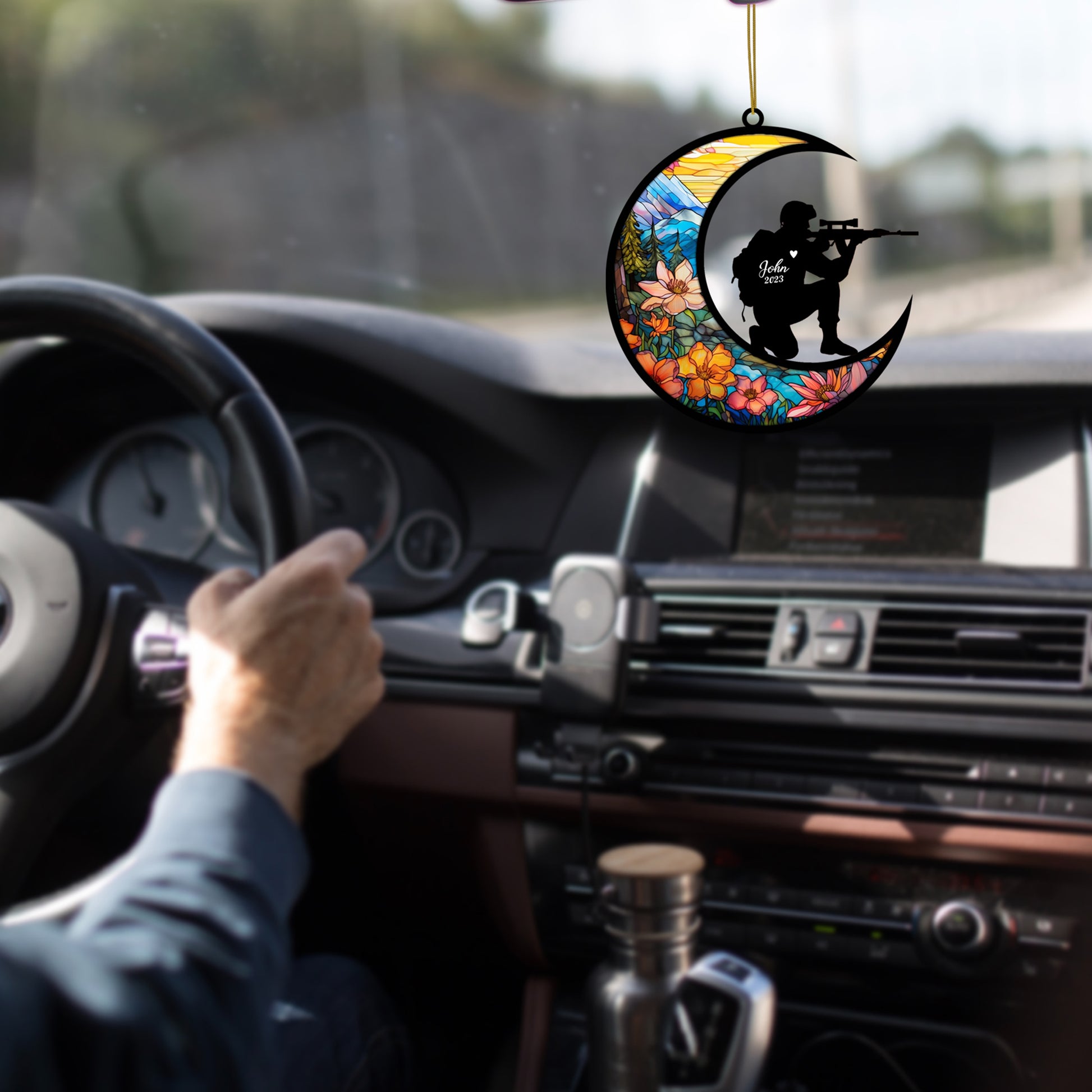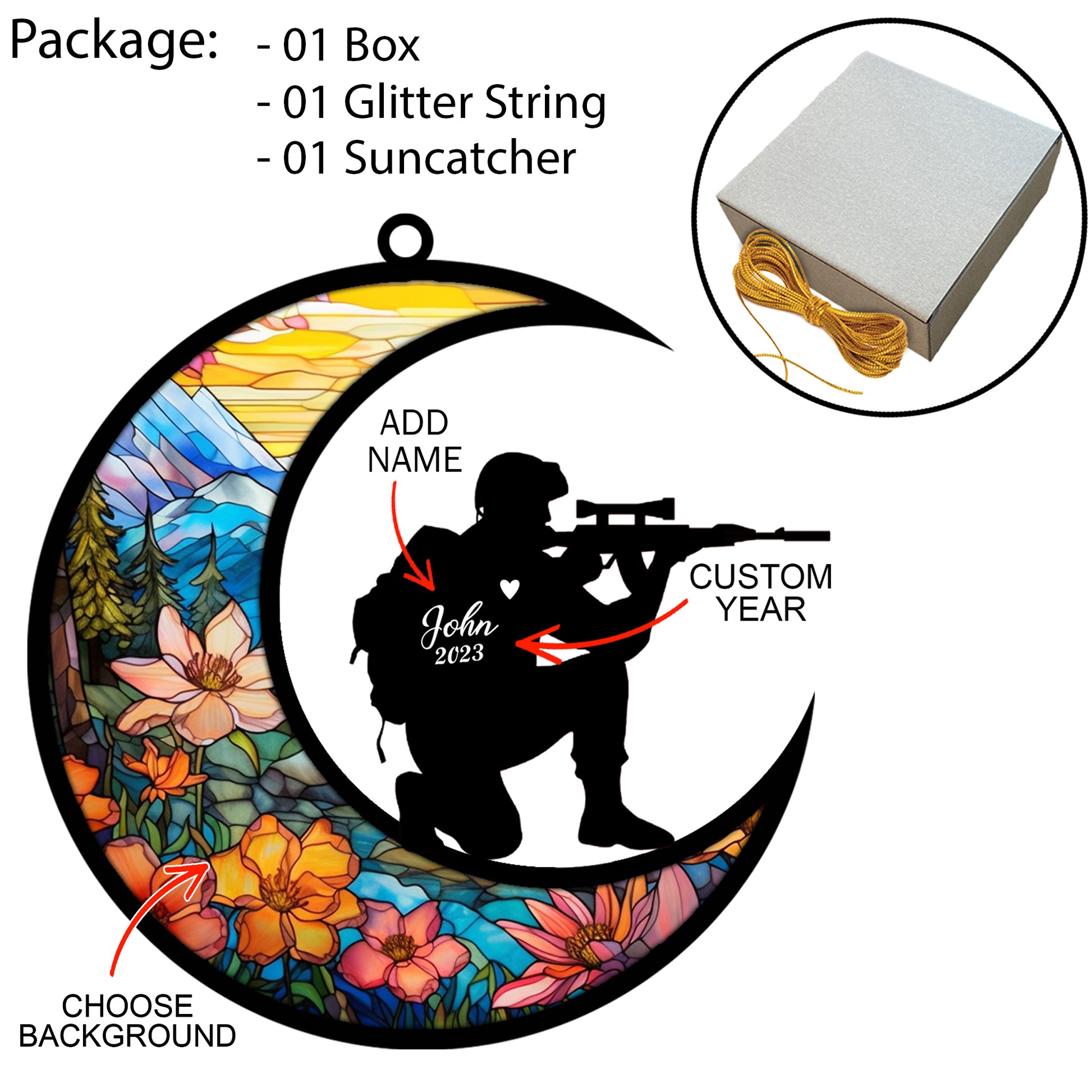 Netecom Personalized Army Memorial Suncatcher - Patriotic Sympathy Gifts for Loss of Father, Dad, Grandpa, or Friend - Veterans & Soldiers Memorial Gift - Hanging Sun Catcher Ornament Decoration