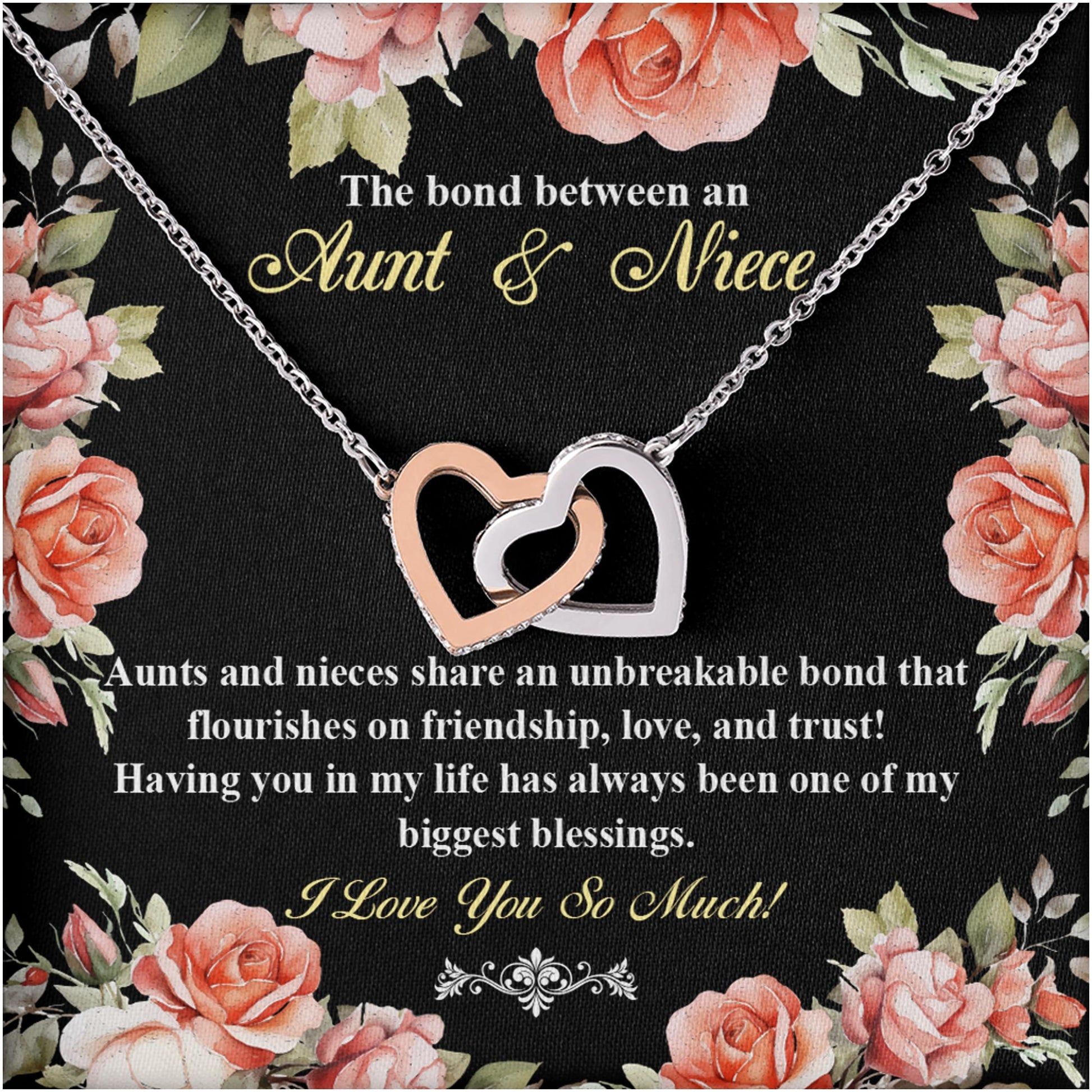 Netecom Personalized Aunt to Niece Necklace – Interlocking Hearts Jewelry with Sentimental Quote Card, Birthday, Graduation, Christmas Gift from Aunt