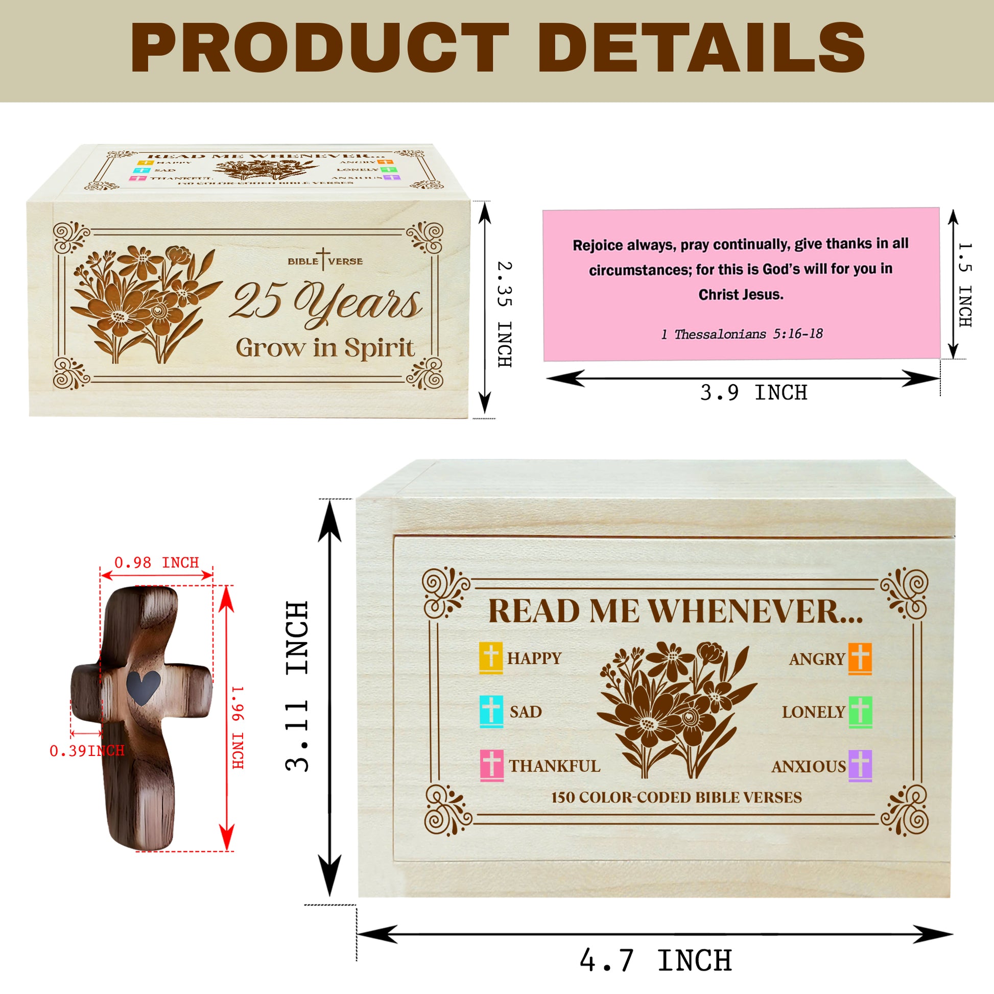 Netecom Personalized Bible Verse Box for 25 Years Birthday, Custom Name & Age, Engraved Wood Scripture Box with Pocket Cross, 150 Daily Bible Verse Cards, Christian Birthday Gift