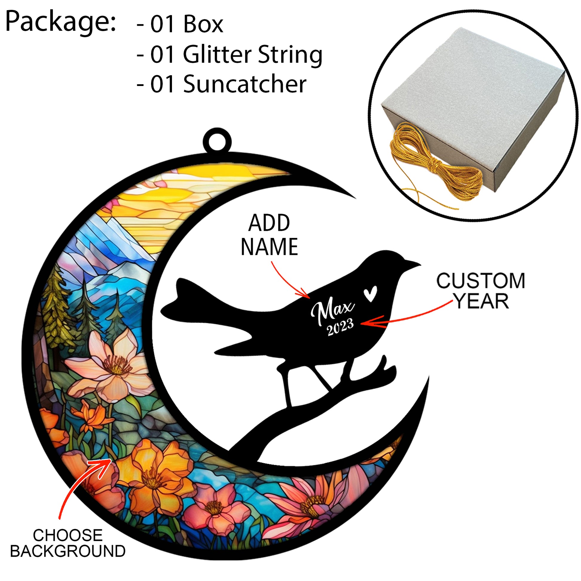 Netecom Personalized Birds Memorial Suncatcher, Pet Loss Suncatcher, Bereavement Birds Loss Gift, Custom Birds with Name Date, Gifts for Bird Lovers, Hanging Ornaments for Xmas, Car, Window
