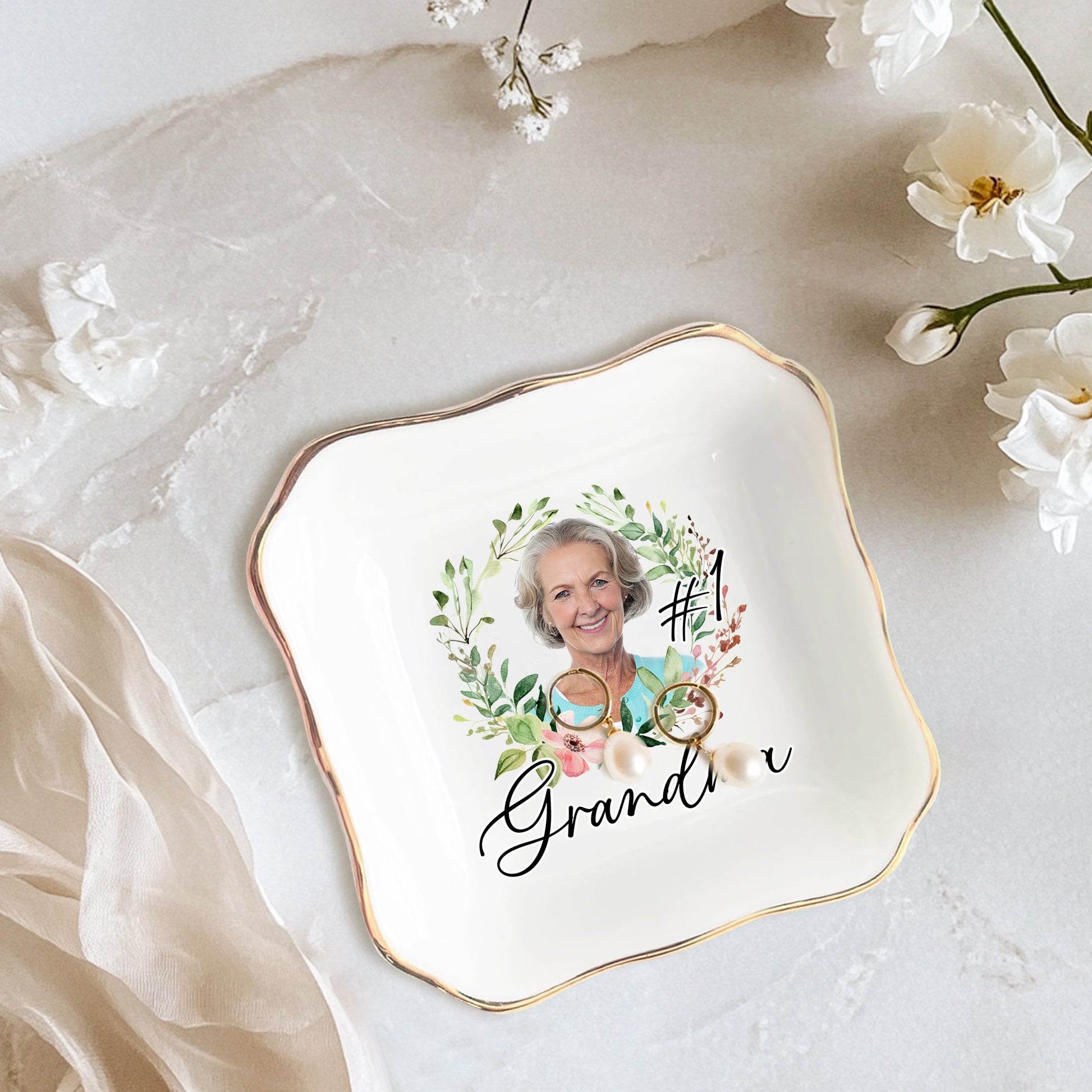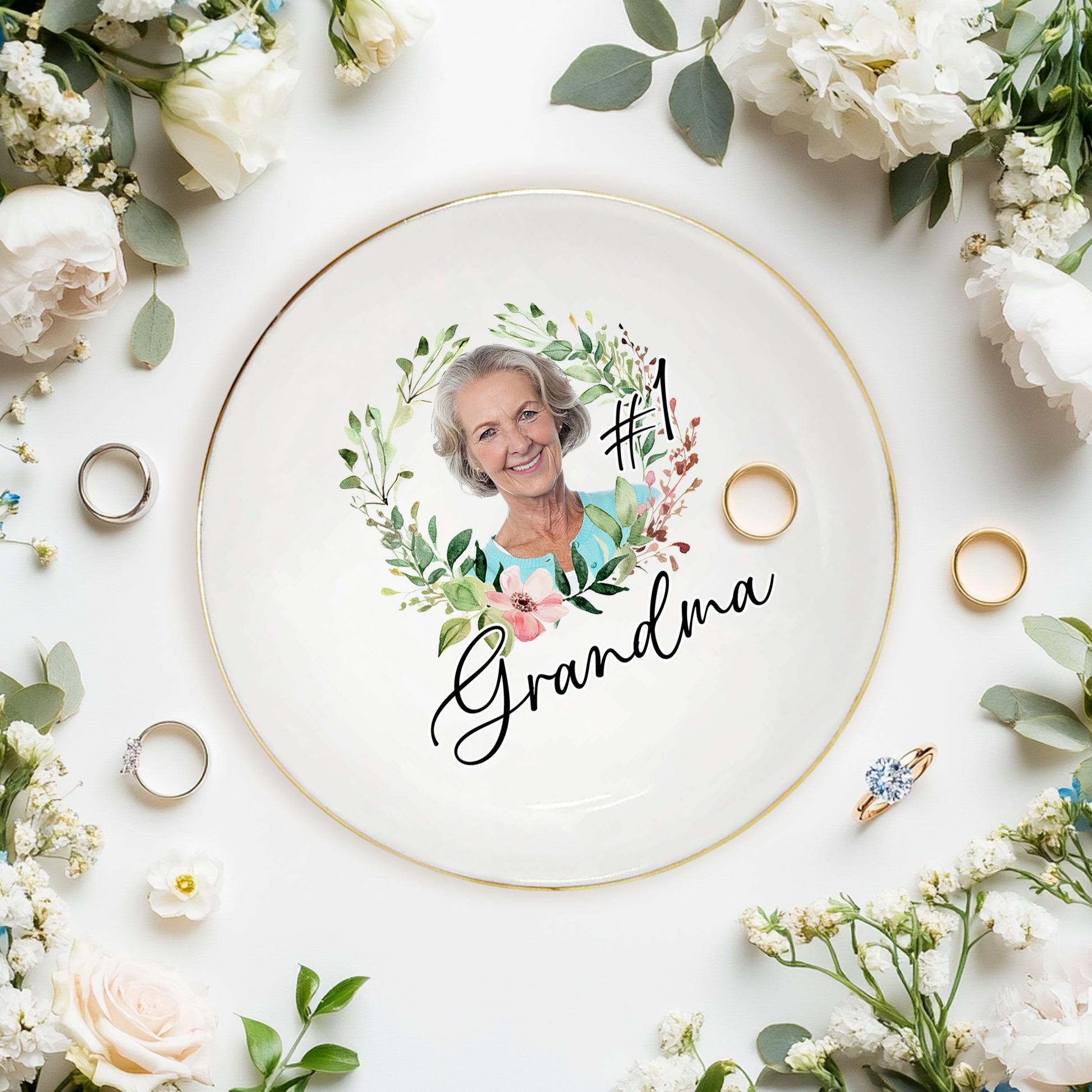 Turn your favorite memory into a cherished keepsake with this beautiful Personalized Photo Ceramic Jewelry Tray. This elegant trinket dish allows you to upload a Custom Photo (e.g., Grandma's portrait) and add Custom Text (e.g., "Grandma," "Best Mom Ever"). It’s the perfect sentimental gift to celebrate Mother's Day, a birthday, or any special family occasion.