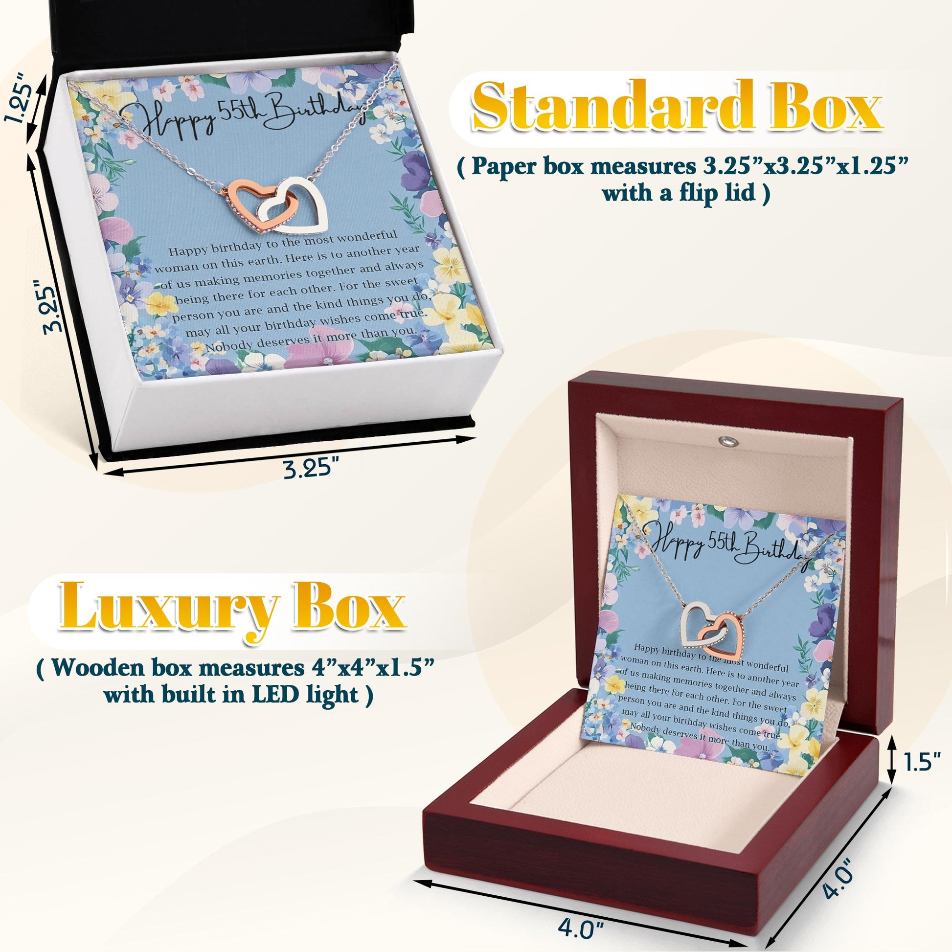 Netecom Personalized Birthday Necklace, Interlocking Heart Jewelry Gift with Custom Floral Card for Women, Meaningful Milestone Birthday Present