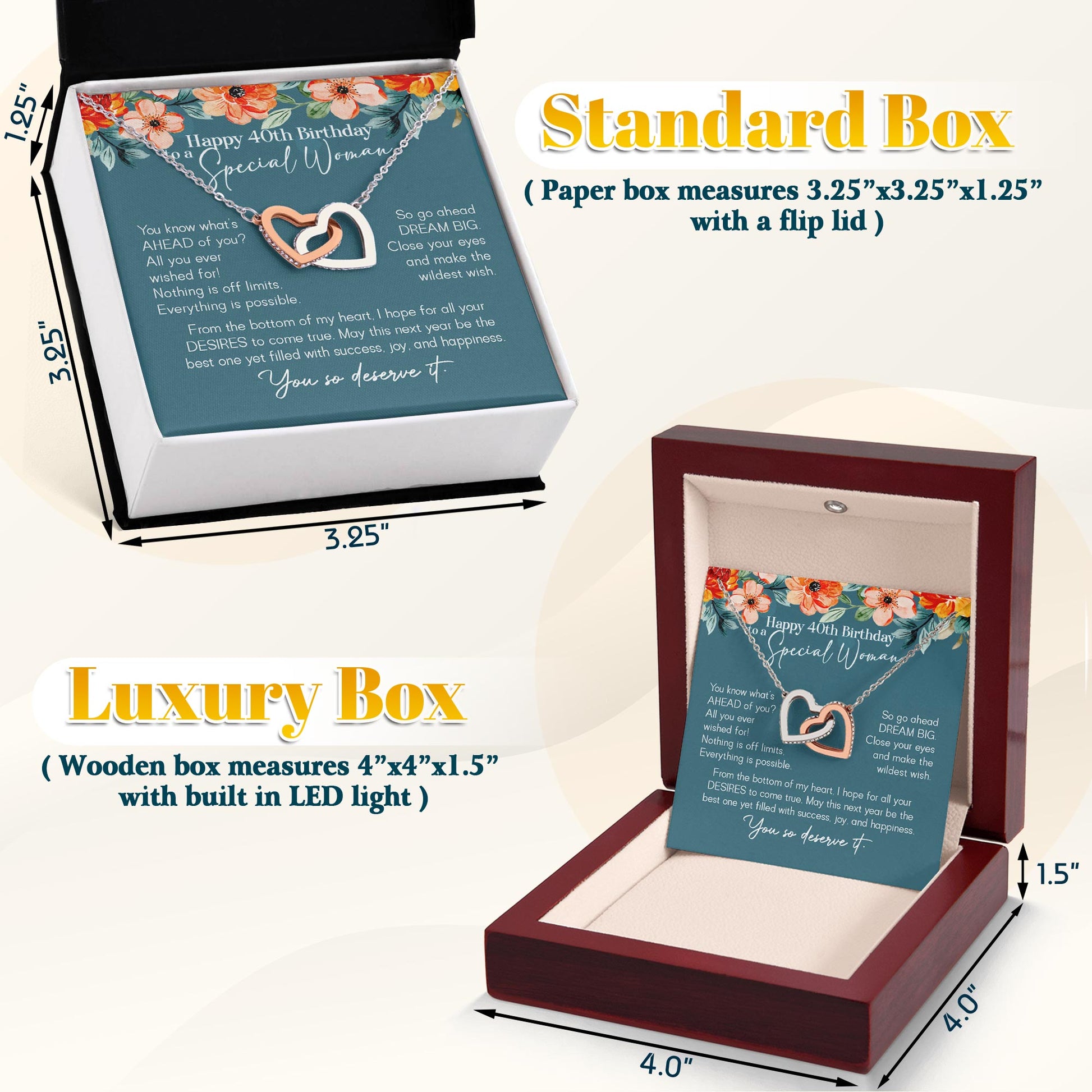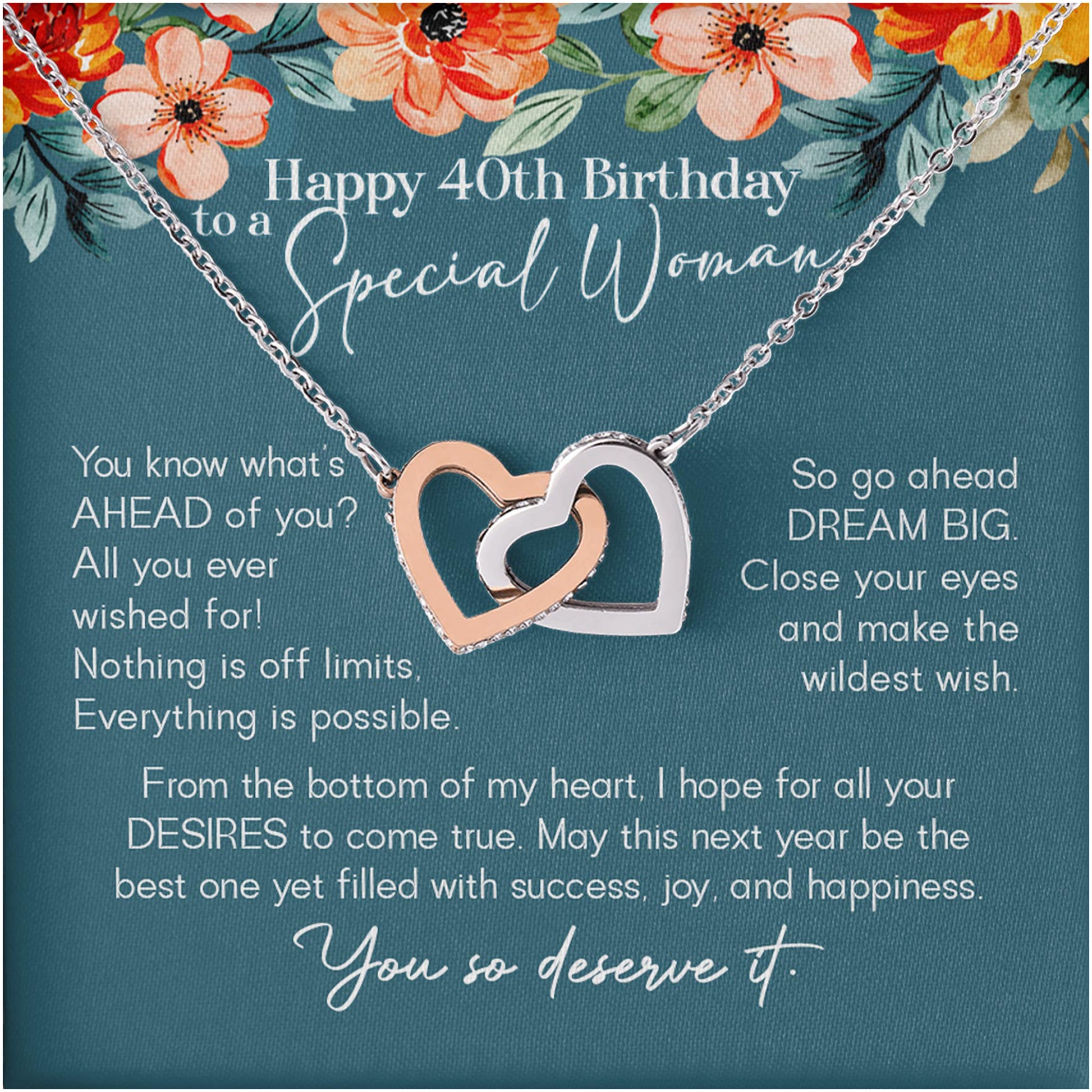 Netecom Personalized Birthday Necklace, Interlocking Heart Jewelry Gift with Custom Floral Card for Women, Special Milestone Birthday Present