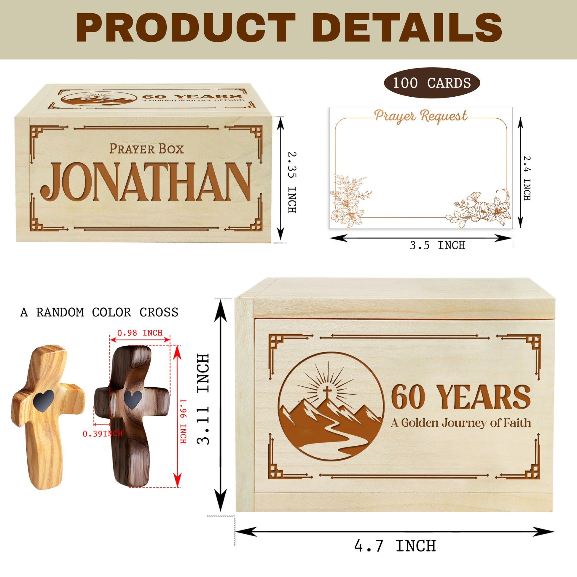 Netecom Personalized Birthday Prayer Box 60 Years with Custom Name, Christian Faith Gift with Wooden Cross & 100 Prayer Request Cards, Meaningful 60th Birthday Gift
