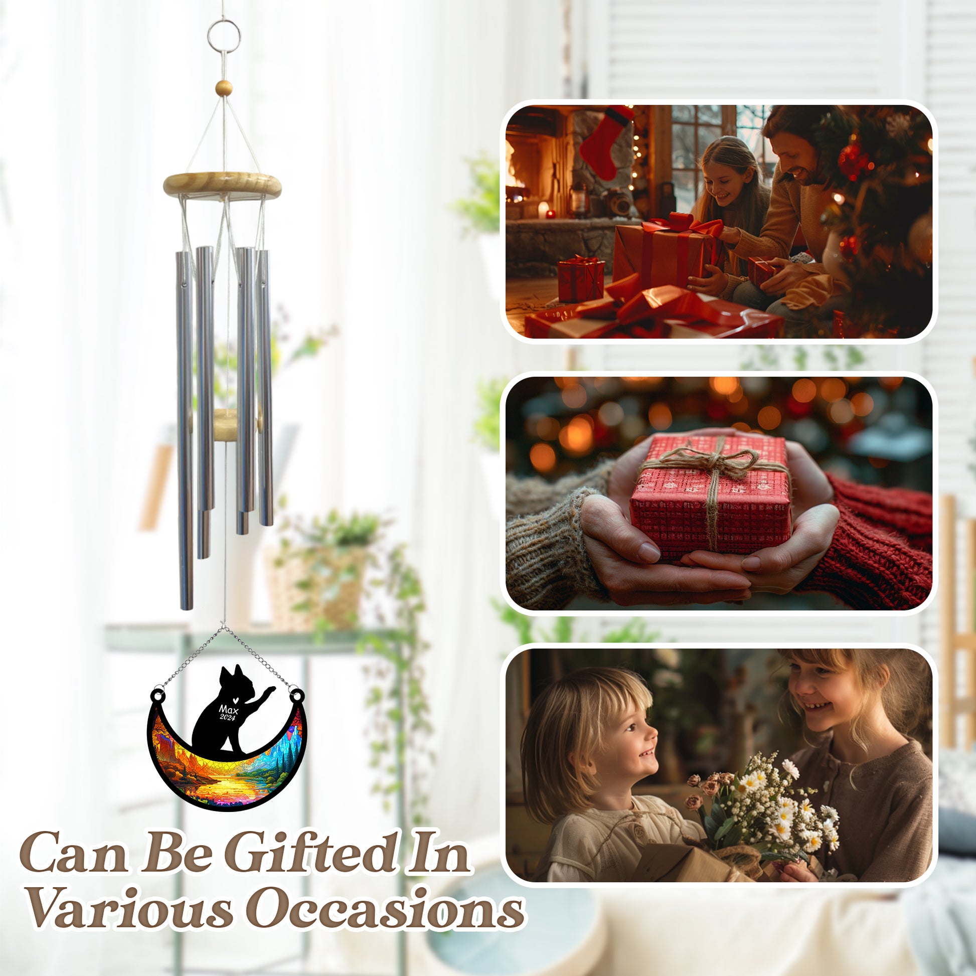 Includes 1 Personalized Wind Chime, 1 Gift Box, and 1 Glitter String