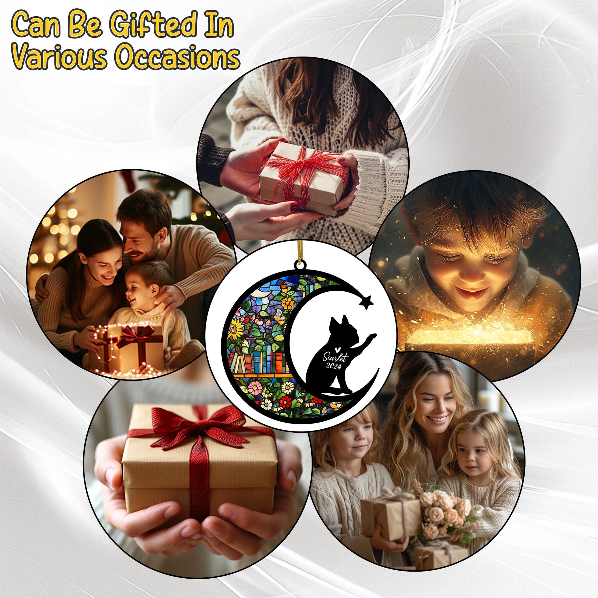 Netecom Personalized Boston Terrier Suncatcher for Windows Hanging, Custom Dog Sun Catcher Ornament with Name Date, Unique Gifts for Book Lovers, Reader Teacher Librarian Bookworm