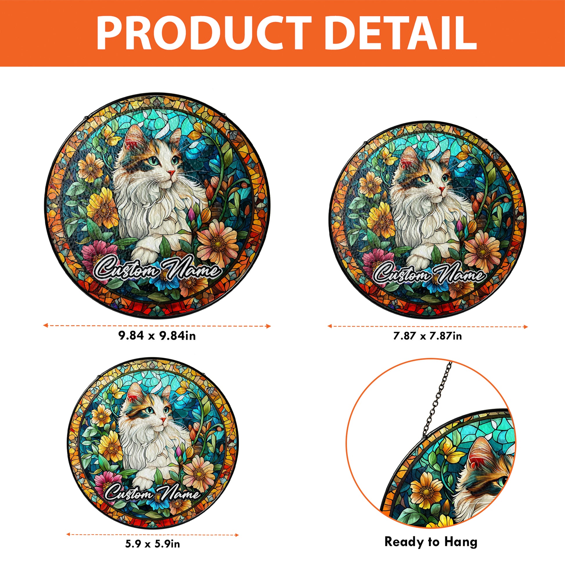 Netecom Personalized Cat Stained Glass Ornament, Custom Pet Memorial Suncatcher, Pet Loss Remembrance Gift, Christmas Decoration