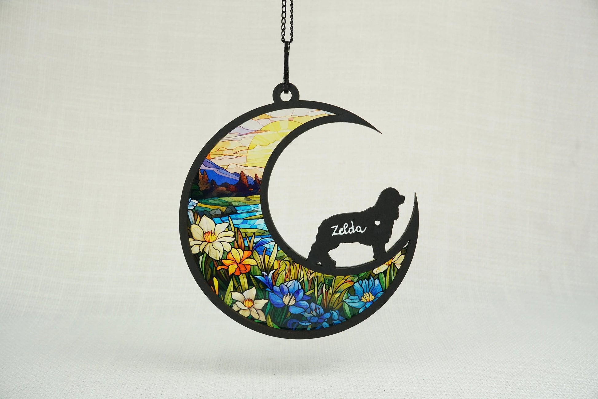 Netecom Personalized Cavalier King Charles Spaniels Suncatcher – Pet Loss Sympathy Gift, Acrylic Stained Glass Window Hanging, Car Accessories