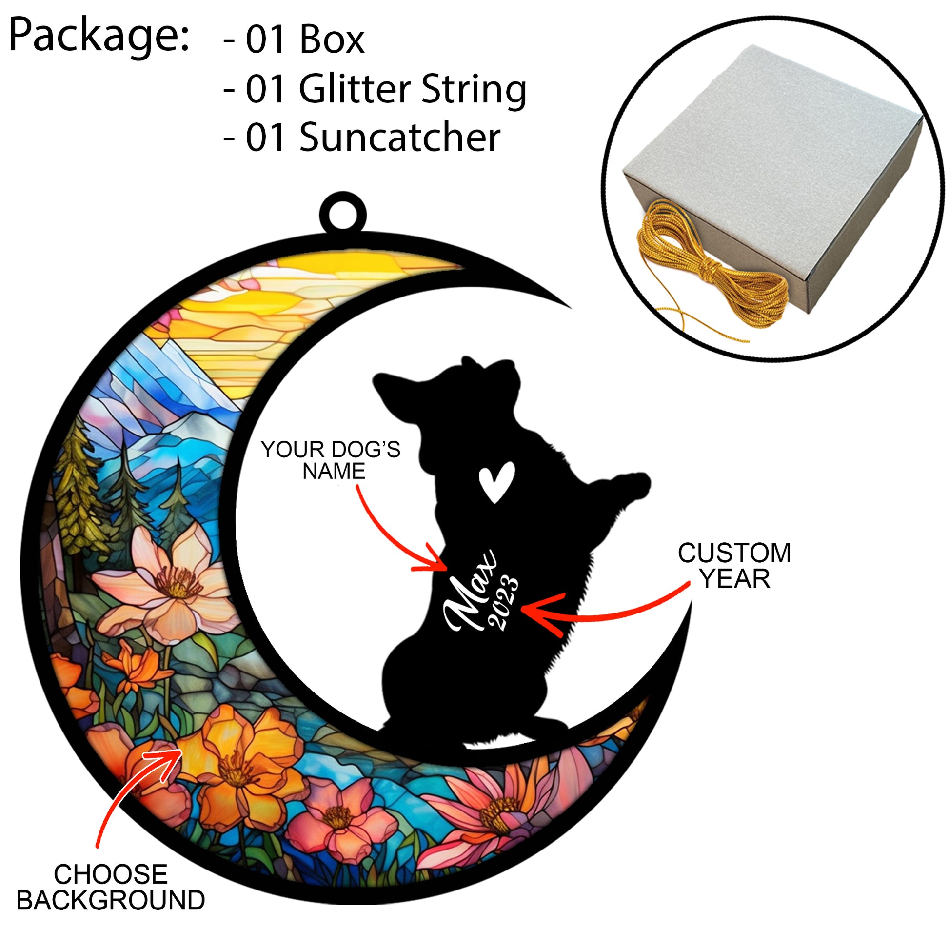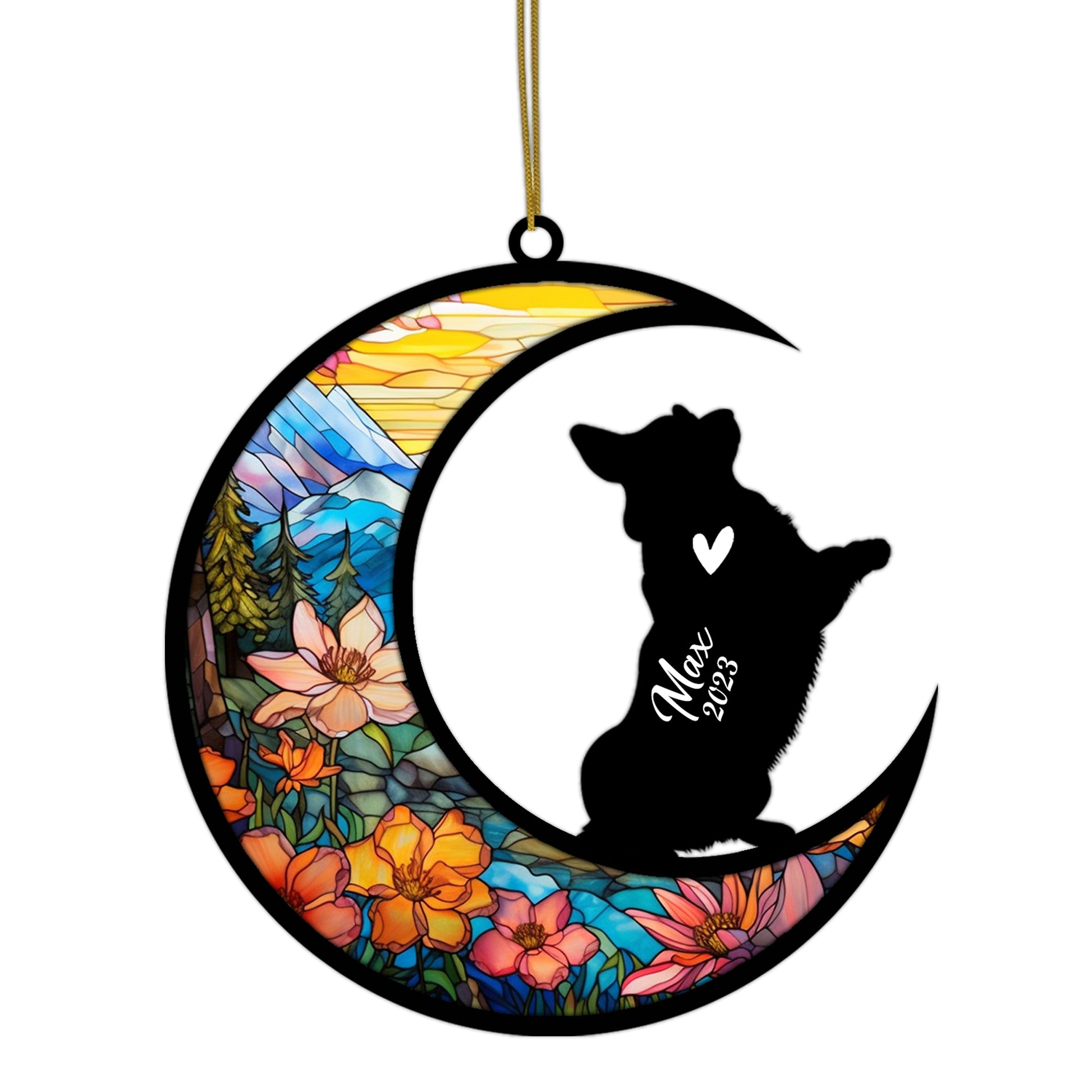 Netecom Personalized Corgi Memorial Suncatcher, Beagle Christmas Ornament with Name Date, Dog Memorial Ornament Loss of Pet Sympathy Gift, Pet Loss Stained Glass