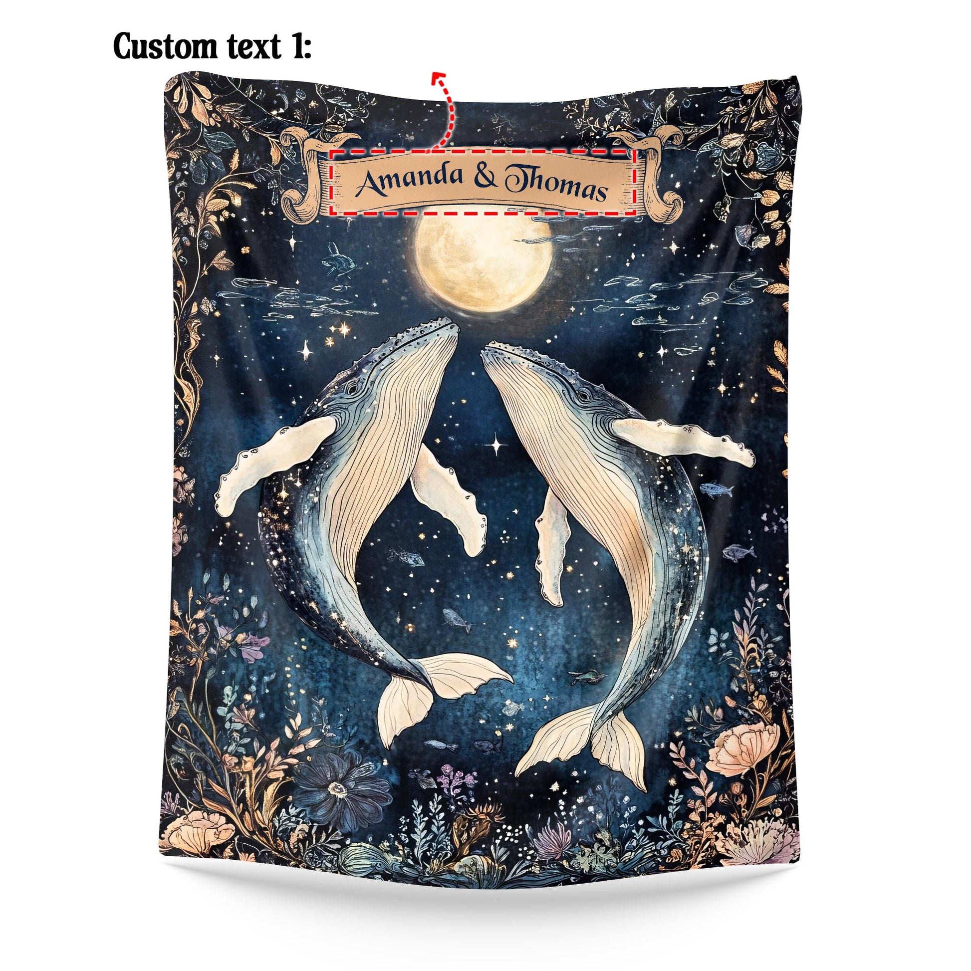 Netecom Personalized Couple Whale Blanket, Custom Name Ocean Moon Throw Blanket for Couch, Bed or Sofa, Ultra Soft Warm, Cute Gift for Husband Wife, Valentine’s Day or Anniversary Present