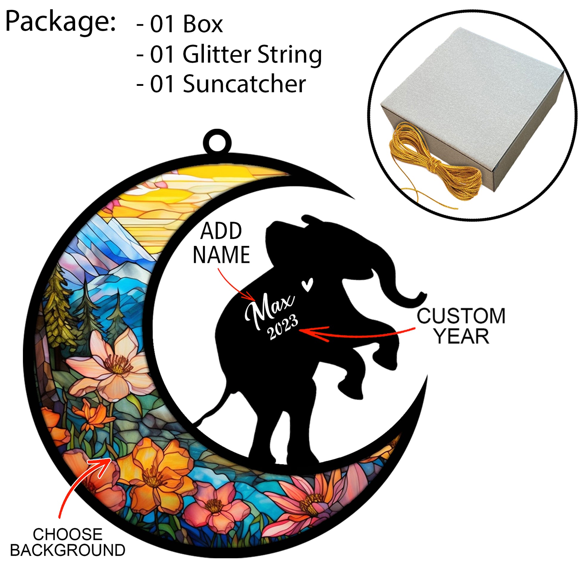 Netecom Personalized Elephant Memorial Suncatcher, Bereavement Pet Loss Gift, Custom Elephant with Name Date, Gifts for Elephant Lovers, Hanging Ornament for Xmas, Car, Window
