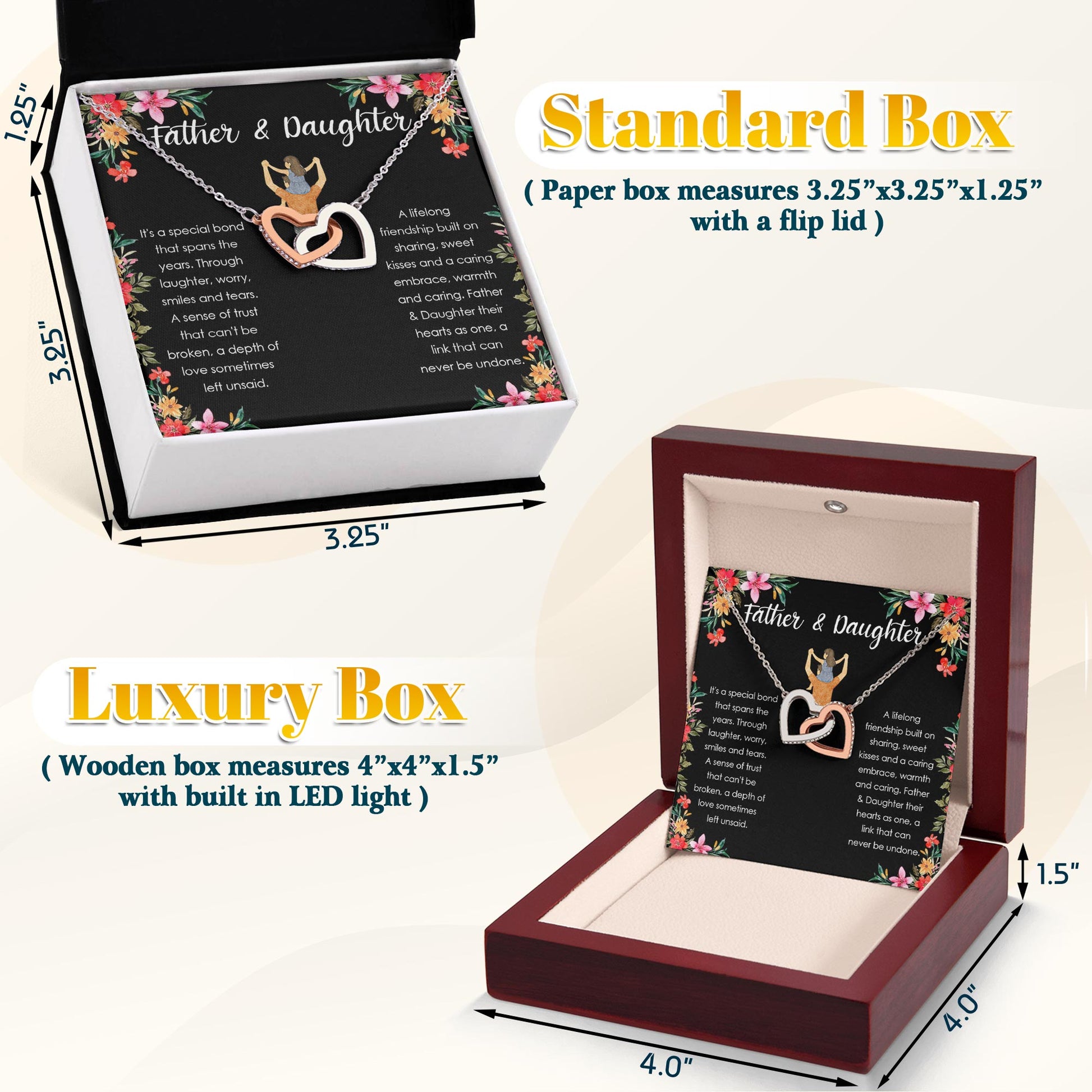 Netecom Personalized Father & Daughter Necklace, Interlocking Hearts Jewelry with Black Floral Card, Birthday, Graduation, Christmas Gift from Dad to Daughter