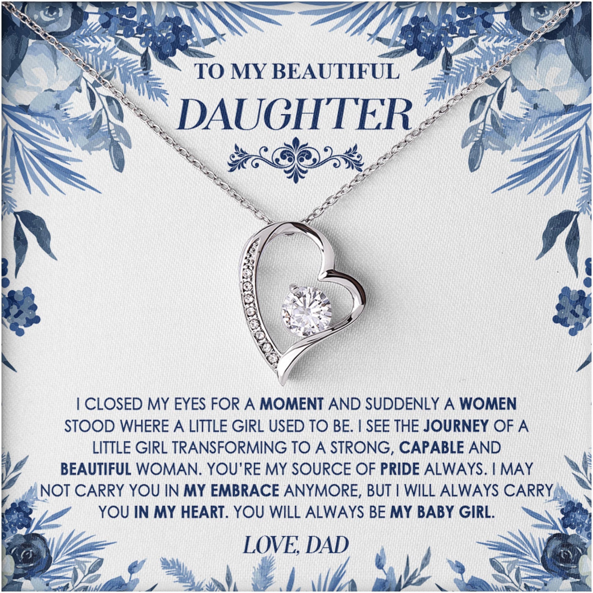Netecom Personalized Father to Daughter Necklace – Heart-Shaped Pendant with Diamond and Sentimental Quote Card, Birthday, Graduation, Christmas Gift from Dad