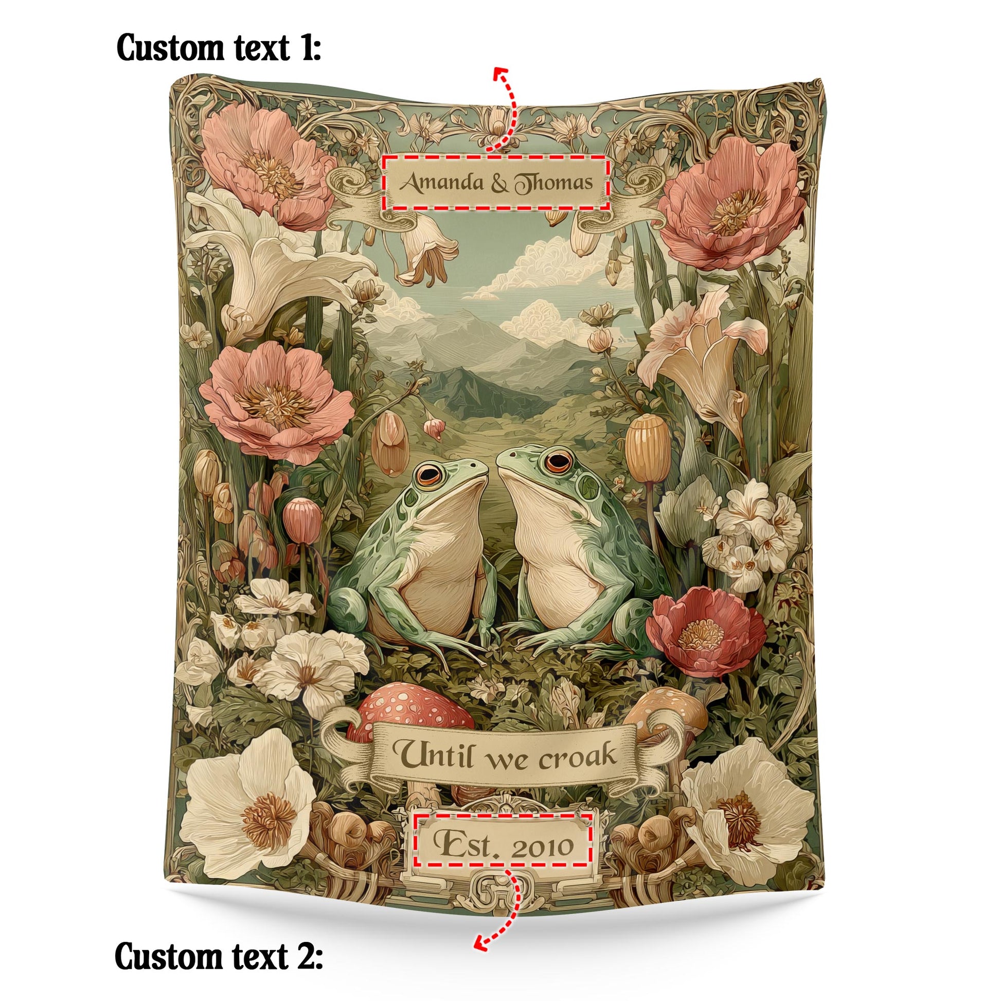 Netecom Personalized Frog Couple Blanket, Custom Names and Established Date, Until We Croak Throw Blanket for Couch, Bed, or Sofa, Perfect Gift for Couples, Christmas, Anniversary