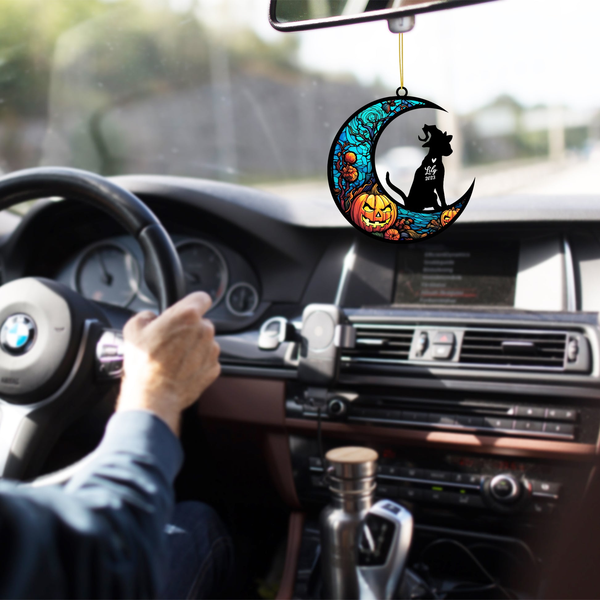 Netecom Personalized Halloween Abyssinian Cat Suncatcher - Memorial Gift for Loss of Cat, Custom Abyssinian Lovers Ornament for Window or Wall Hanging, Spooky Sympathy Gift