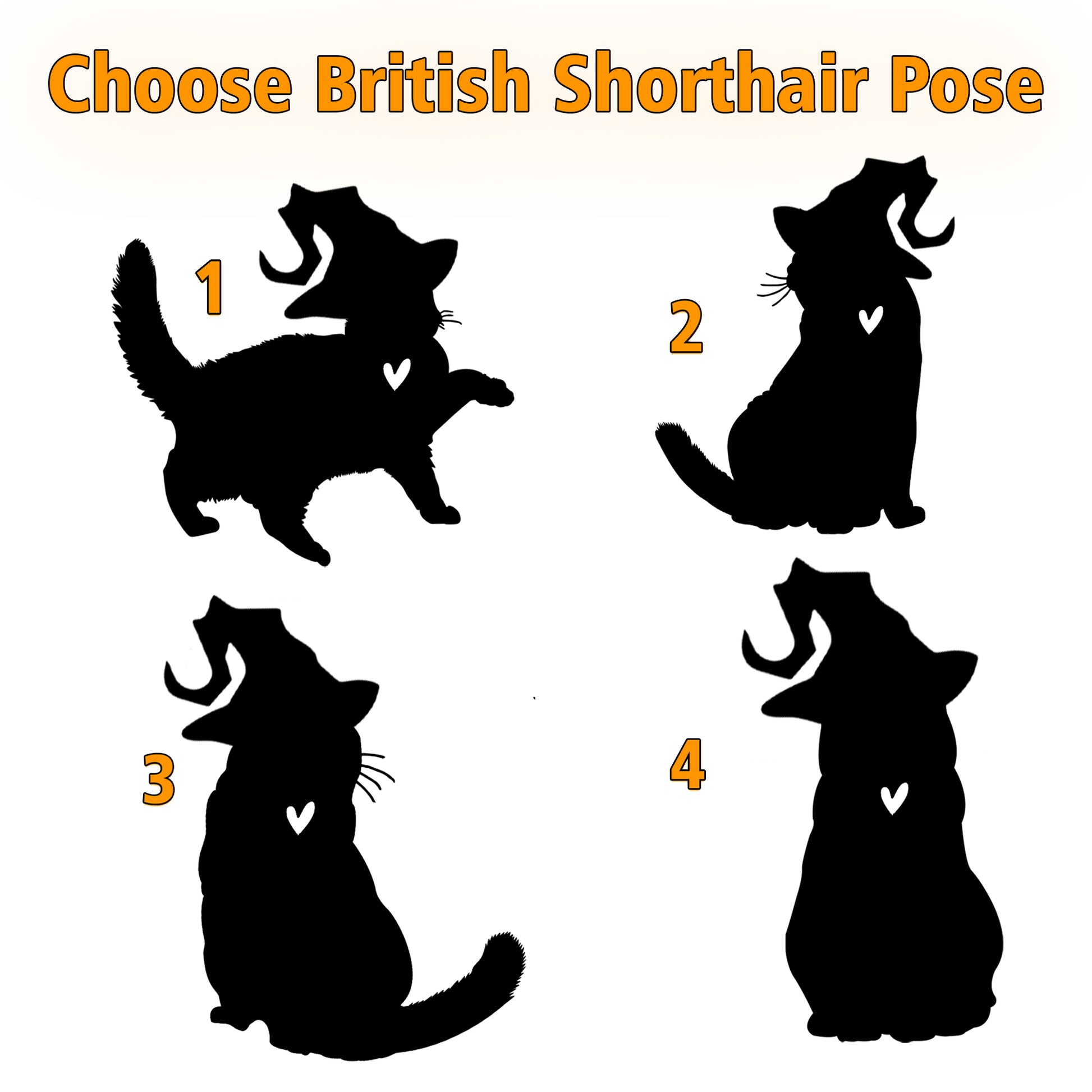 Netecom Personalized Halloween British Shorthair Cat Suncatcher - Custom Cat Ornament with Name, British Shorthair Cat with Witch Hat Halloween Decoration for Window or Garden
