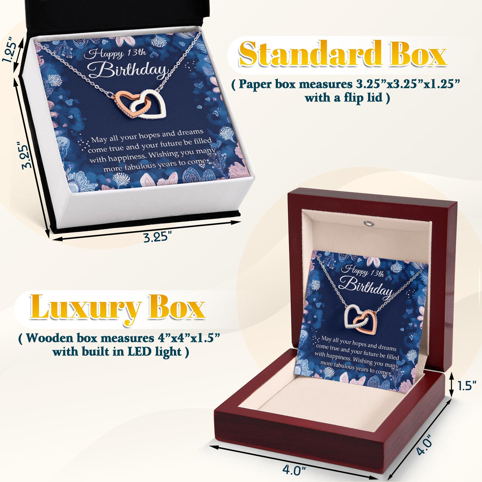 Netecom Personalized Happy Birthday Necklace, Custom Name Floral Card, Interlocking Hearts Jewelry Gift for Birthday Celebration
