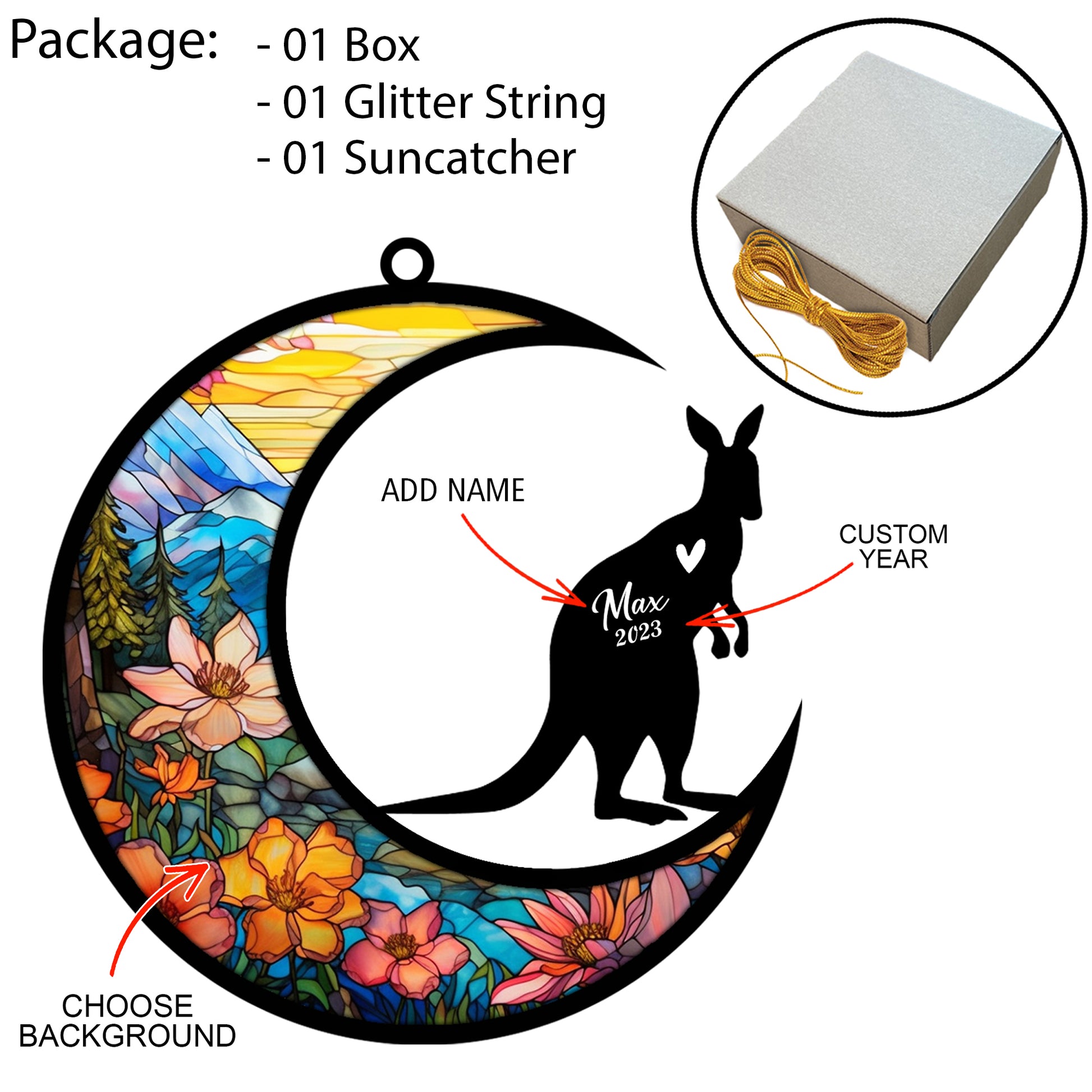 Netecom Personalized Kangaroo Memorial Suncatcher, Pet Loss Suncatcher Bereavement Kangaroo Loss Gift, Custom Kangaroo with Name Date, Gifts for Kangaroo Lover, Hanging Ornament for Car, Window
