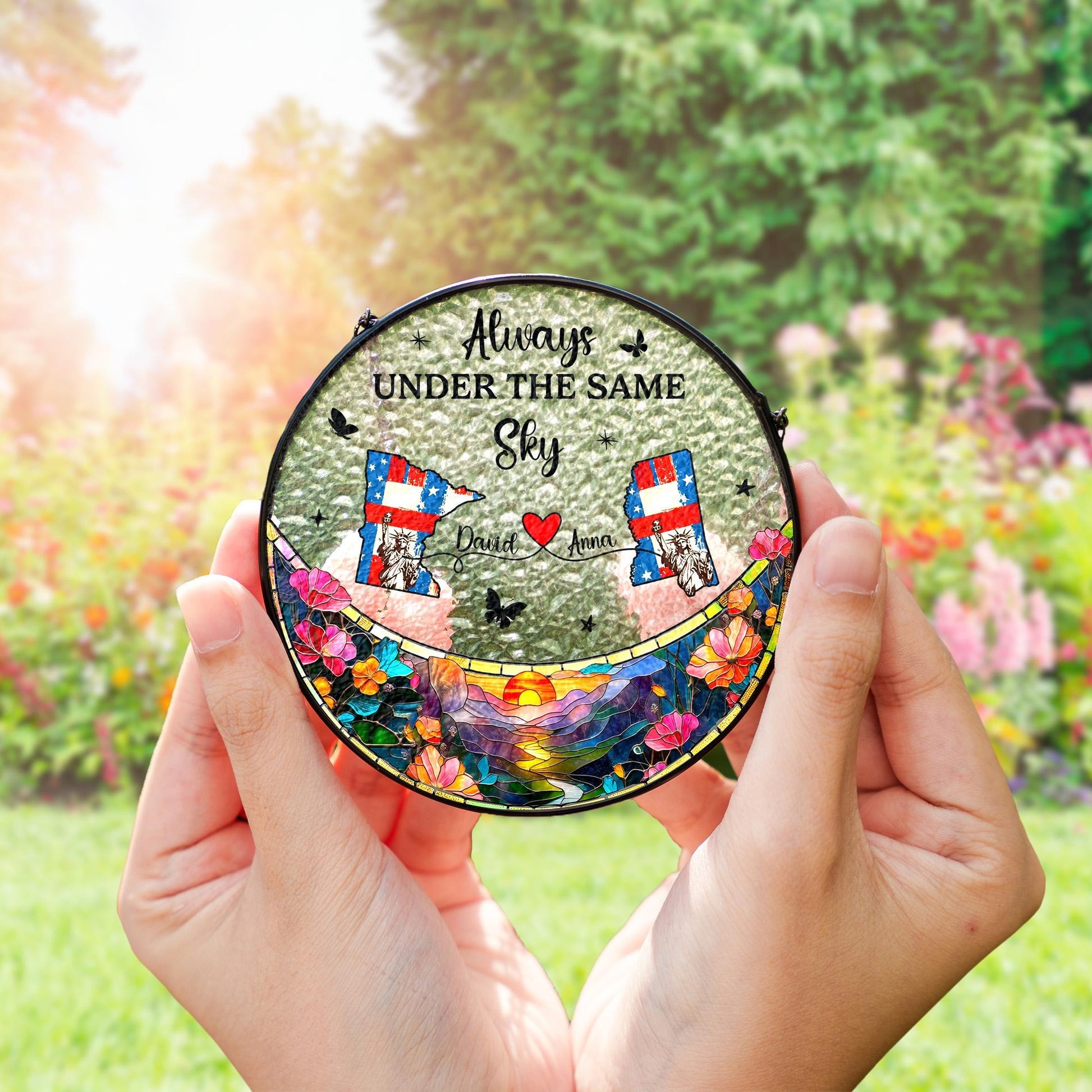 Netecom Personalized Long Distance Stained Glass Suncatcher, Always Under the Same Sky Gift, Long Distance Friendship Keepsake, Sister Best Friend