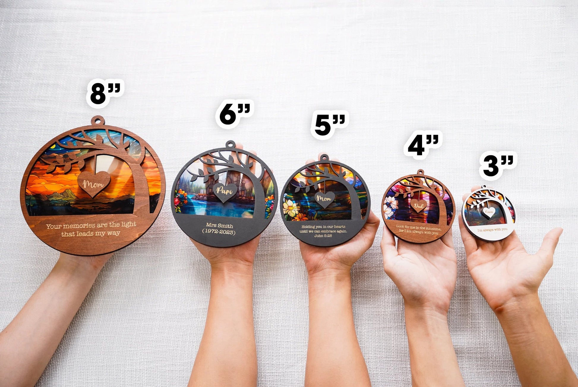 This personalized memorial suncatcher is designed to honor the memory of someone dearly missed. The layered wood and acrylic create a stunning stained-glass effect, capturing sunlight beautifully and filling your space with gentle warmth and color.