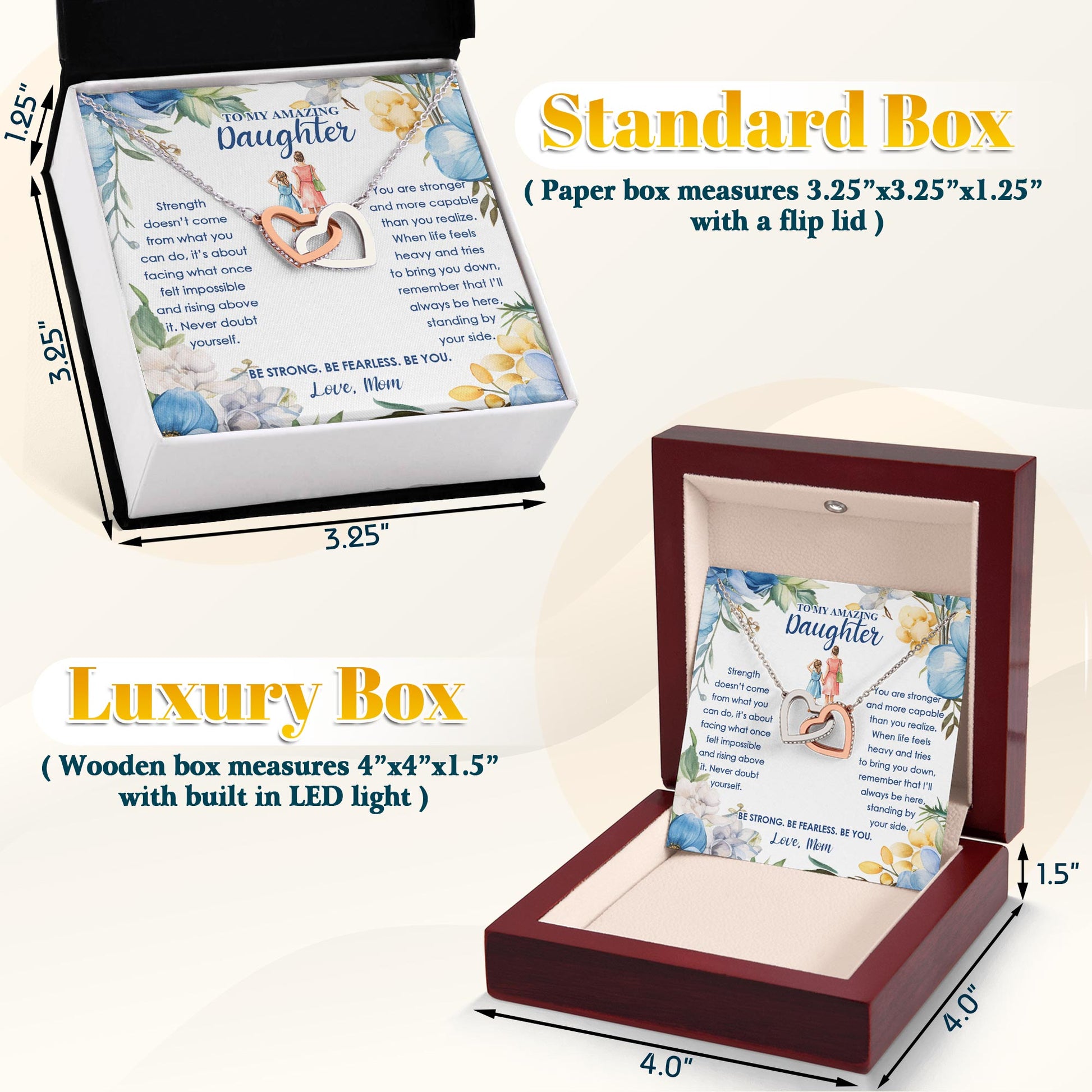 Netecom Personalized Mother to Daughter Necklace – Interlocking Hearts Jewelry with Inspirational Quote Card, Encouragement Gift for Birthday, Graduation, or Special Occasions from Mom