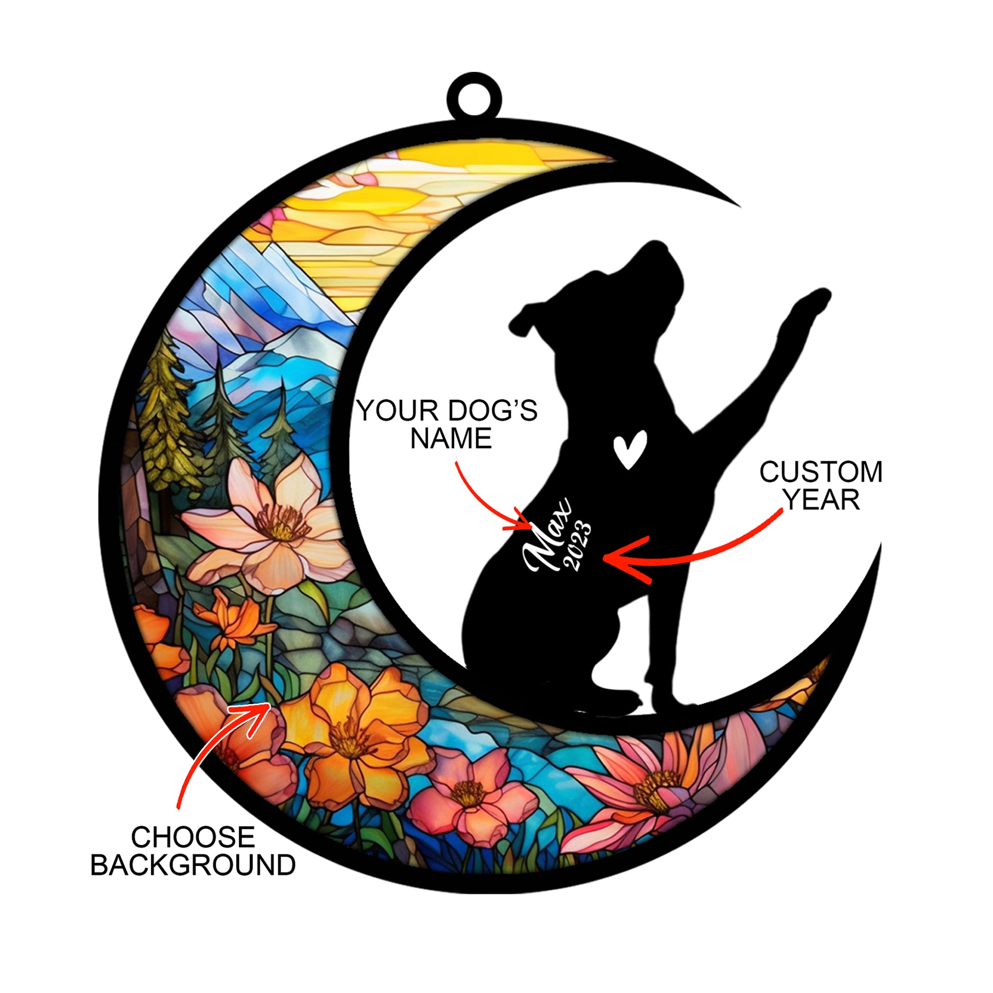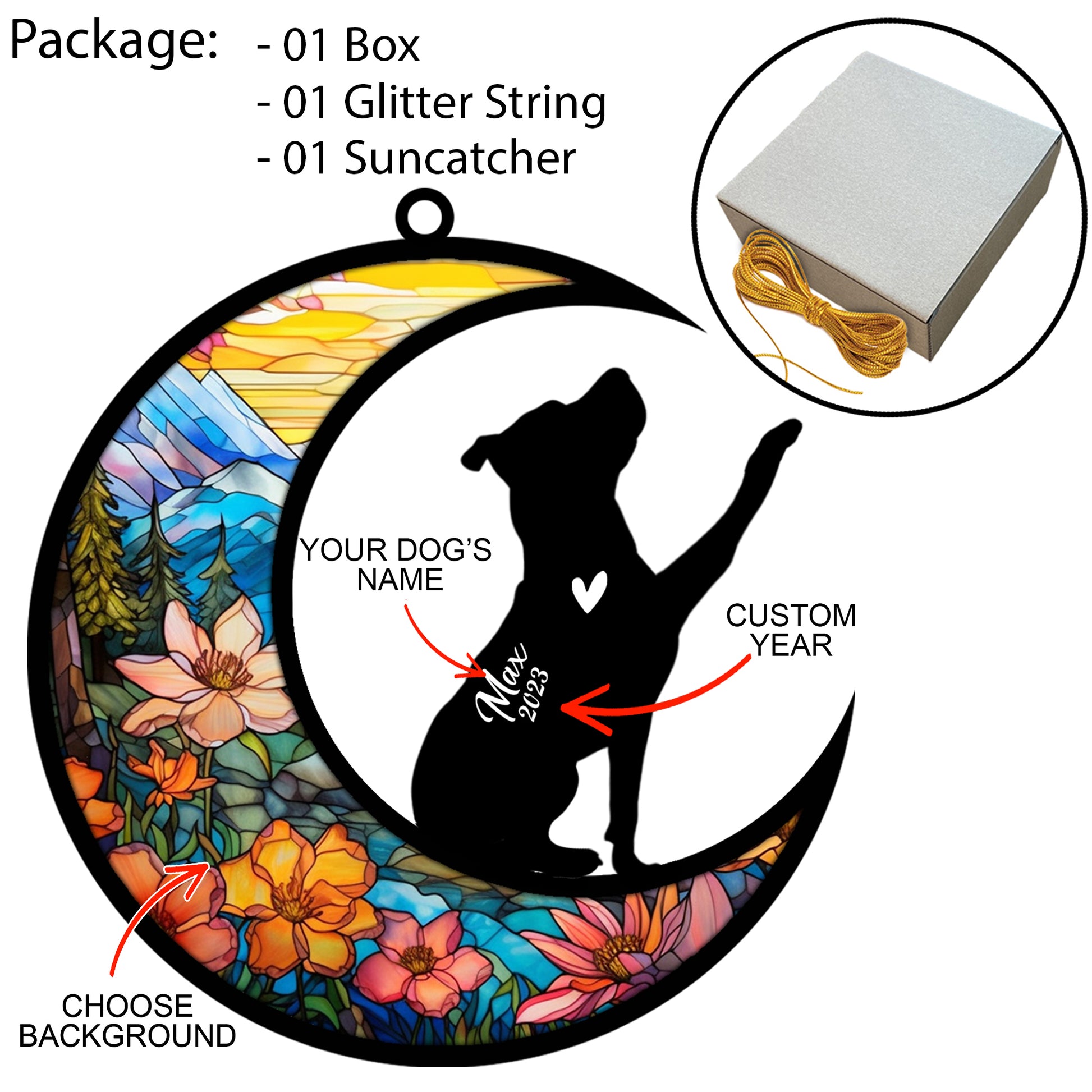 Netecom Personalized Pitbull Memorial Suncatcher, Beagle Christmas Ornament with Name Date, Dog Memorial Ornament Loss of Pet Sympathy Gift, Pet Loss Stained Glass
