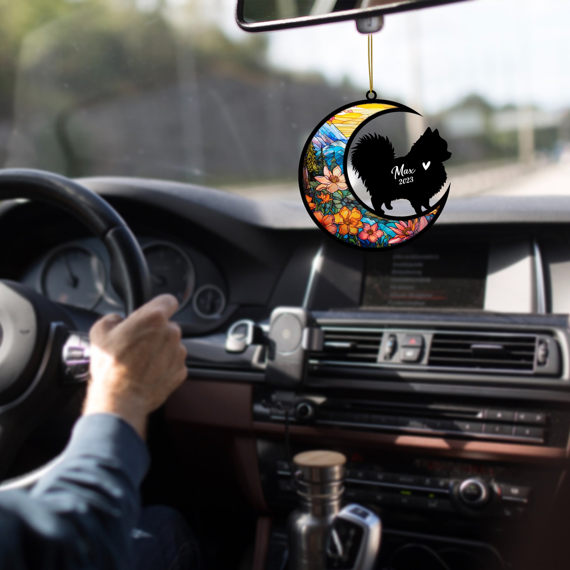 Netecom Personalized Pomeranian Memorial Suncatcher - Beagle Christmas Ornament with Name & Date - Dog Memorial Ornament - Pet Loss Sympathy Gift - Stained Glass Light Catcher