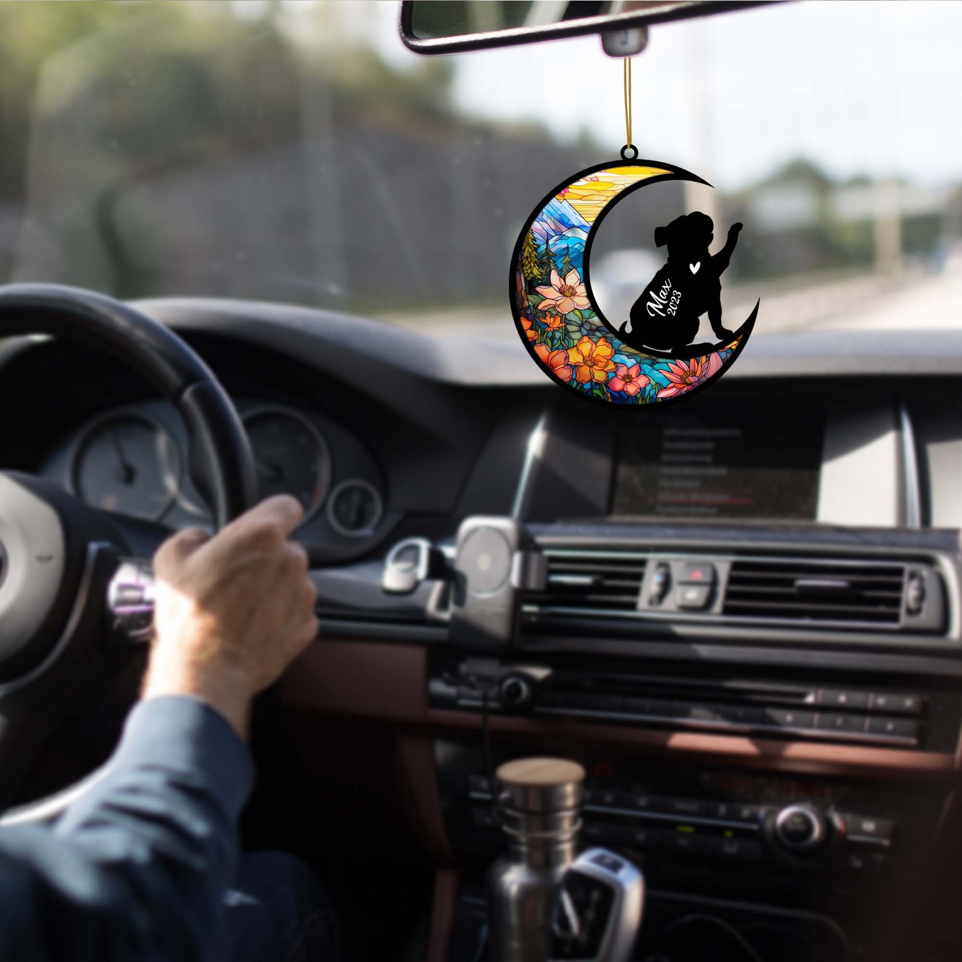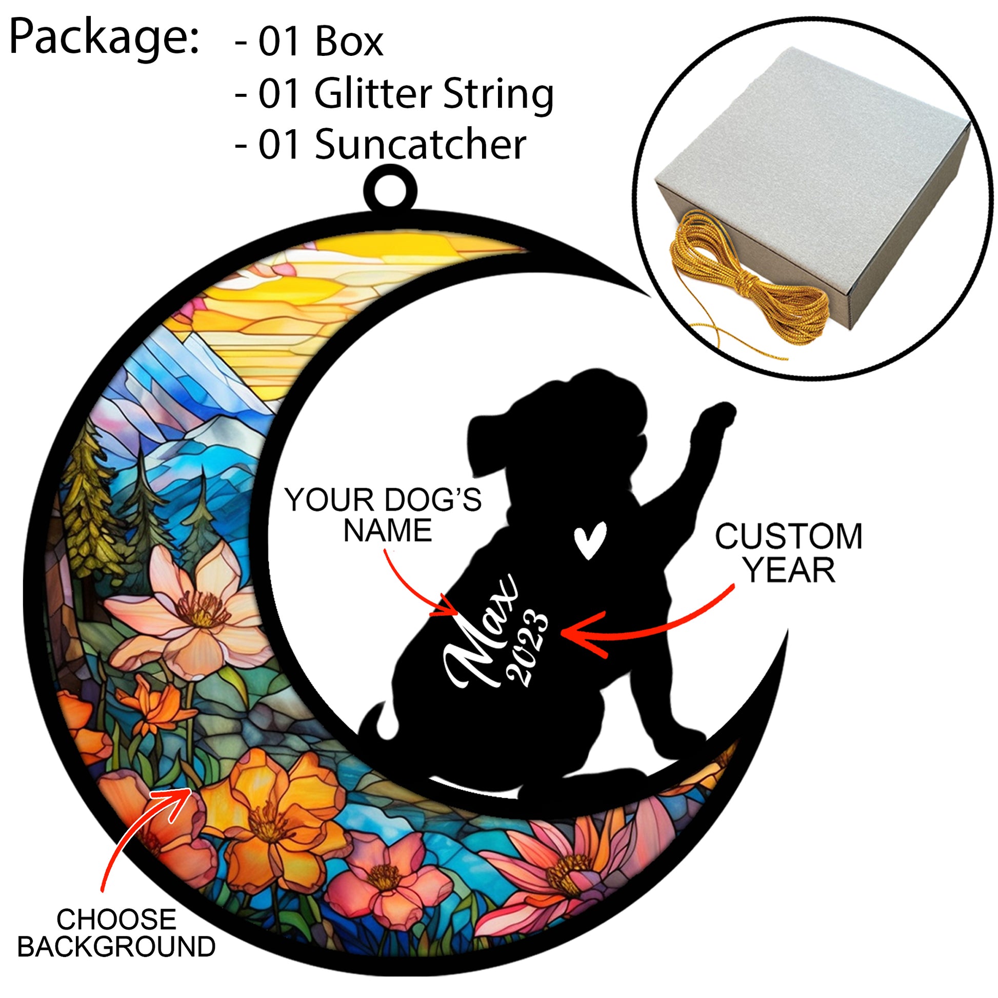 Netecom Personalized Pug Memorial Suncatcher, Beagle Christmas Ornament with Name Date, Dog Memorial Ornament Loss of Pet Sympathy Gift, Pet Loss Stained Glass