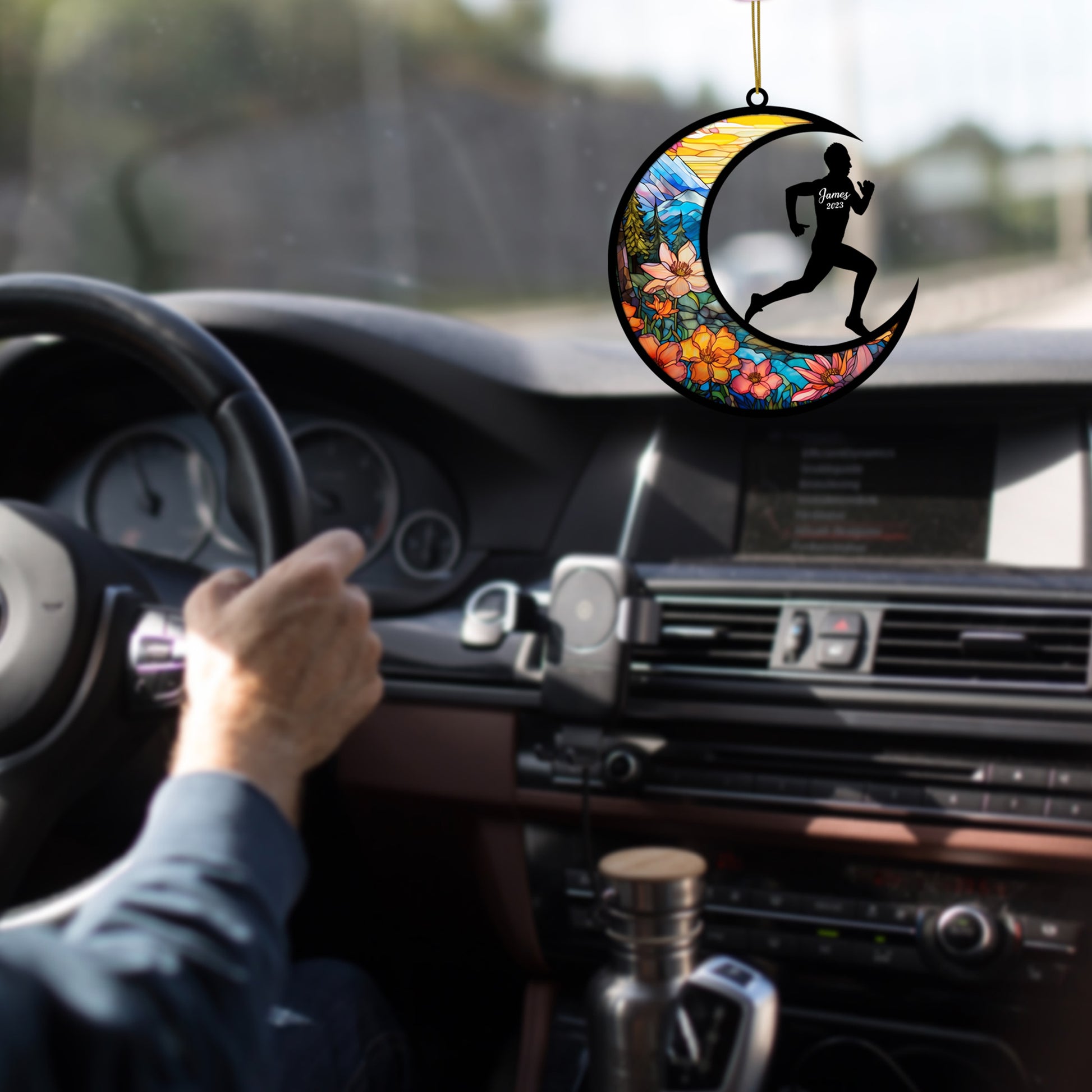 Netecom Personalized Running Suncatcher - Runner Ornament for Christmas Tree 2025 - Running Christmas Pendant & Hanging Decoration for Car, Window, Home & Party - Running Lover Gift
