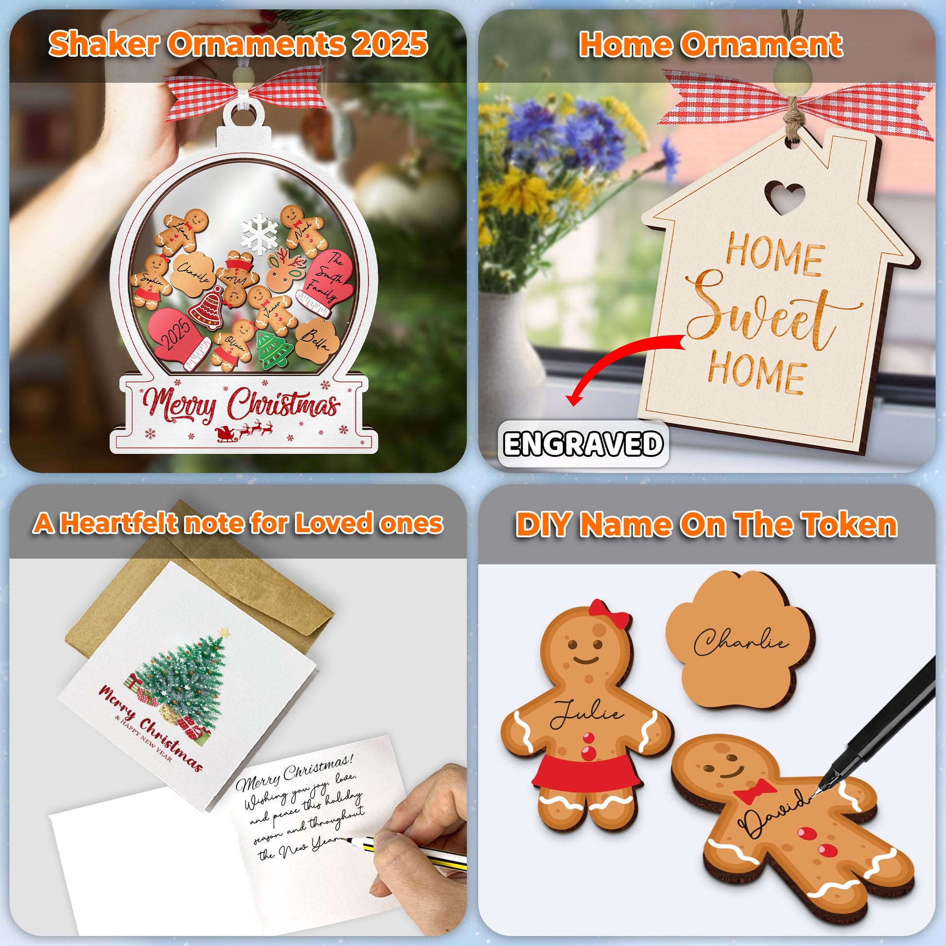 Designed as a mini snow globe shaker, this ornament lets you fill it with adorable Christmas icons and family name cutouts to create your own one-of-a-kind keepsake. Simply push the icons through the bottom hole, give it a gentle shake, and watch your little festive world come alive inside!