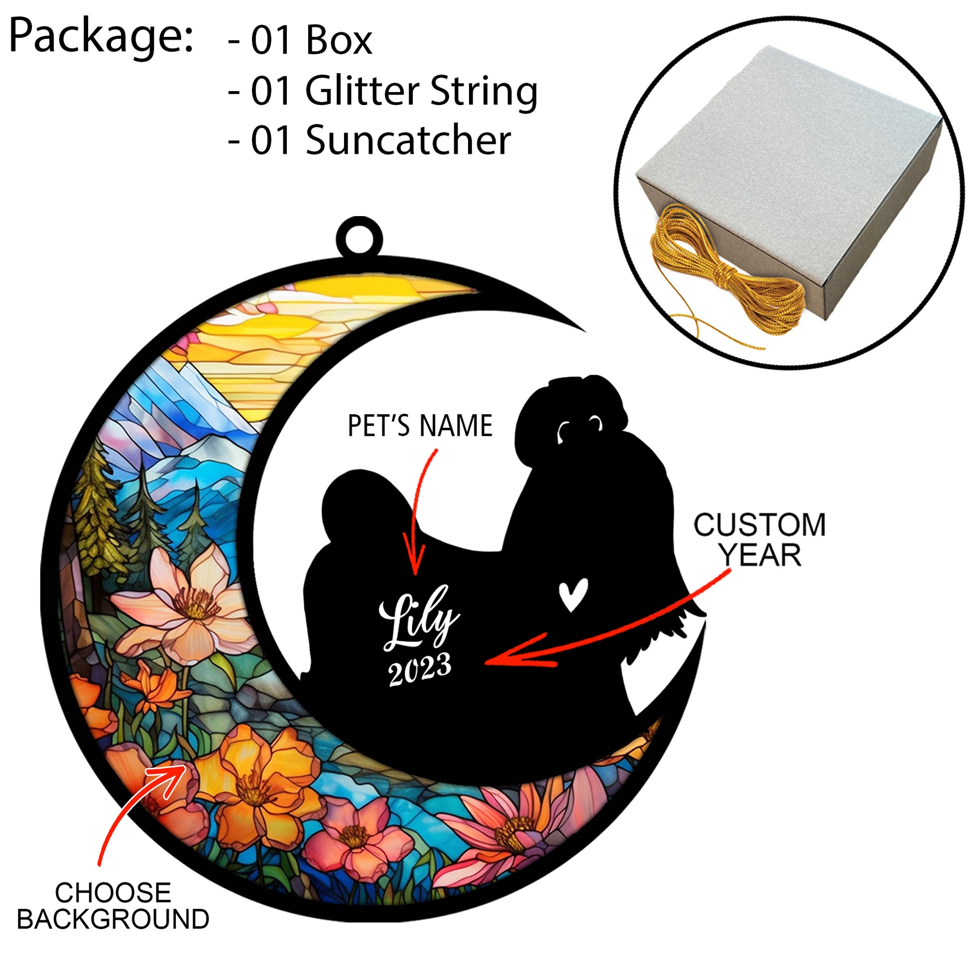 Netecom Personalized Shih Tzu Memorial Suncatcher - Beagle Christmas Ornament with Name & Date - Dog Memorial Ornament - Pet Loss Sympathy Gift - Stained Glass Light Catcher