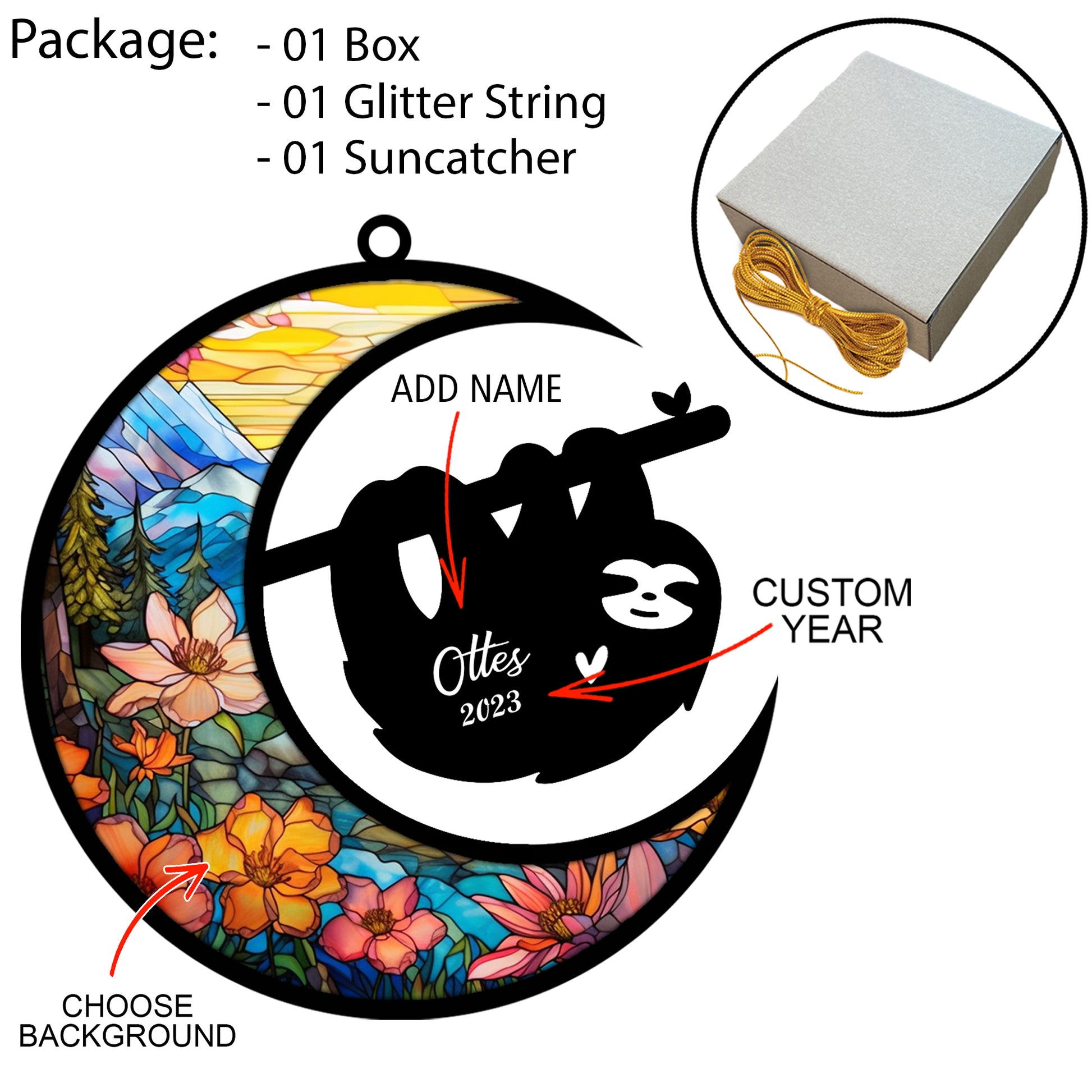 Netecom Personalized Sloth Memorial Suncatcher - Sloth Christmas Ornament with Name & Date - Pet Loss Stained Glass Light Catcher - Bereavement & Sympathy Gift for Loss of Pet