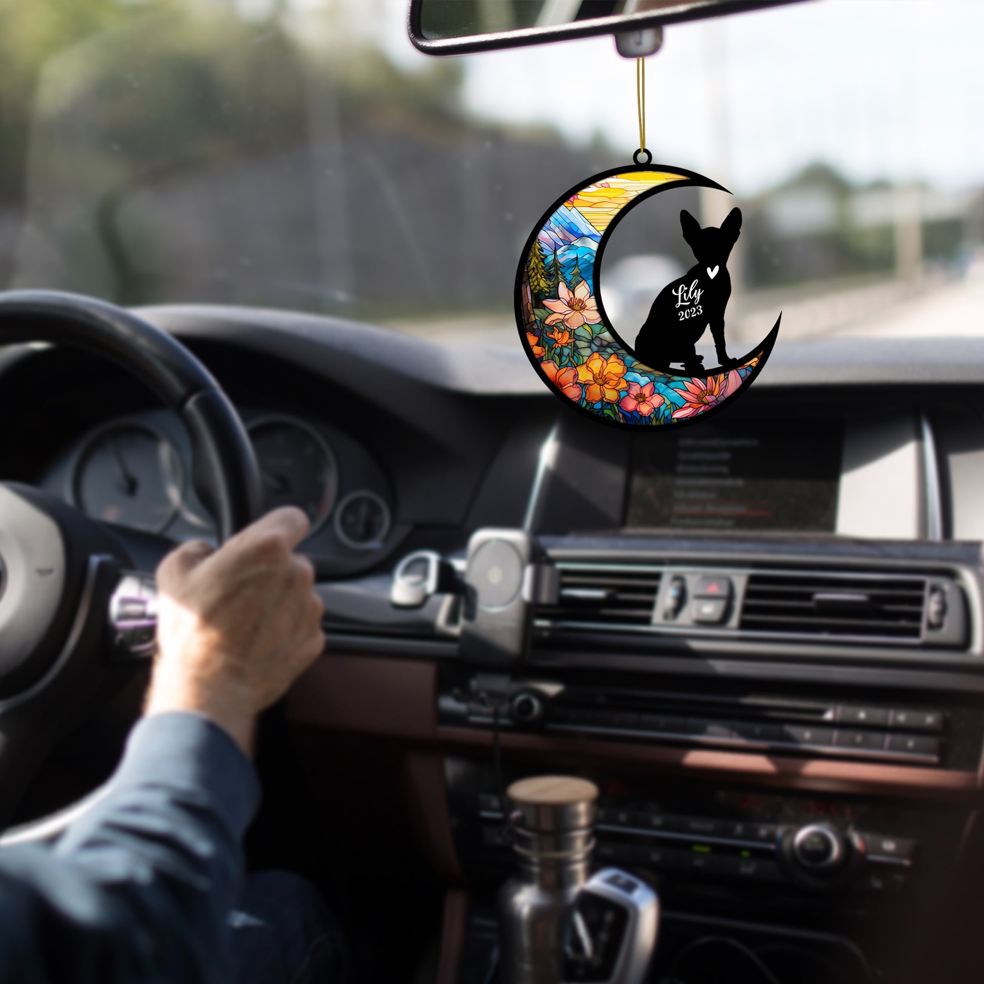 Netecom Personalized Sphynx Cat Memorial Suncatcher - Custom with Name & Date - Pet Loss Light Catcher - Christmas Cat Ornament for Window & Car Decor
