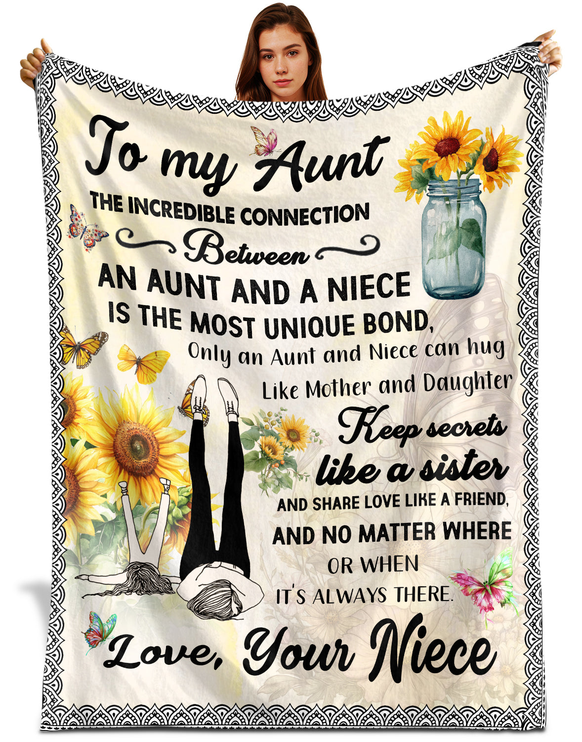 Netecom Personalized Sunflower To My Aunt Blanket from Niece, Custom Love Letter Throw Blanket for Couch, Bed or Sofa, Ultra Soft Warm Gift for Aunt’s Birthday and Christmas