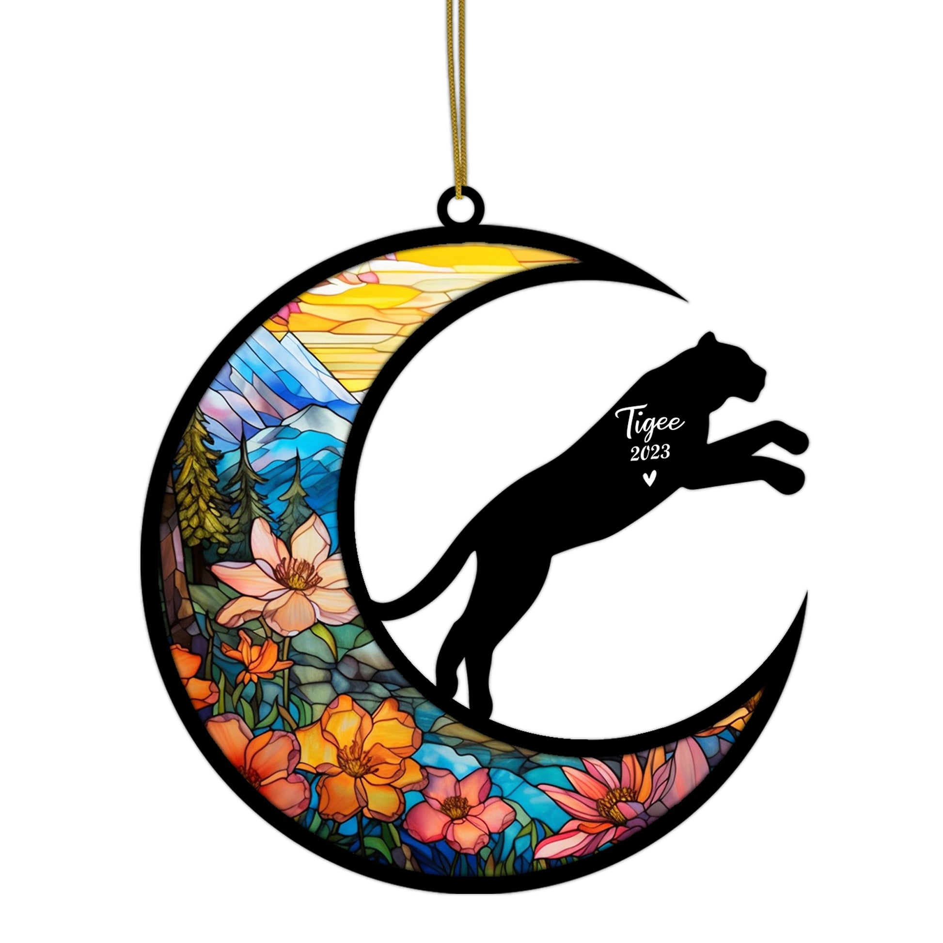 Netecom Personalized Tiger Memorial Suncatcher - Tiger Christmas Ornament with Name & Date - Pet Loss Stained Glass Light Catcher - Bereavement & Sympathy Gift for Loss of Pet