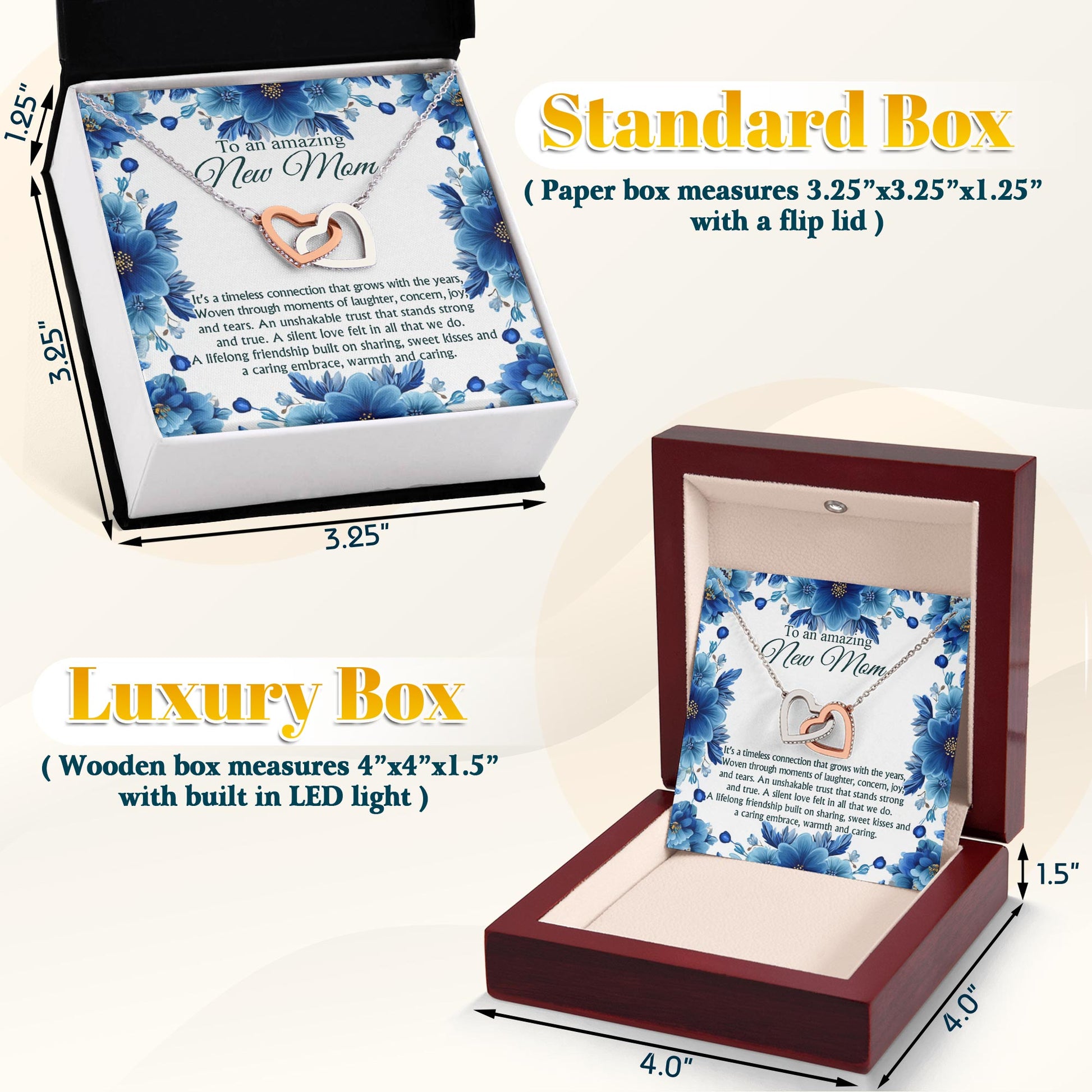 Netecom Personalized To An Amazing New Mom Necklace, Interlocking Hearts Jewelry with Floral Card, Baby Shower, Mother’s Day, First-Time Mom Gift