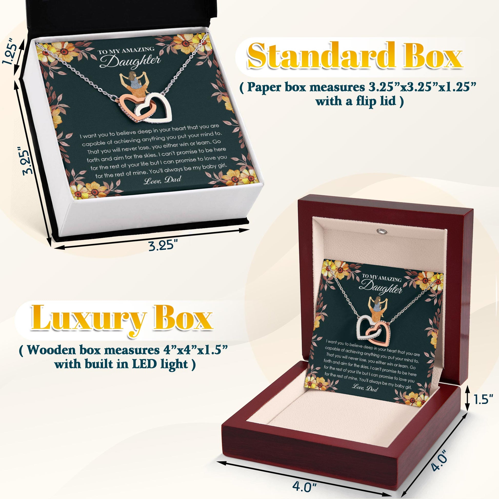 Netecom Personalized To My Amazing Daughter Necklace from Dad, Custom Vintage Flowers Message Card with Name, Interlocking Heart Jewelry Gift for Birthday, Christmas