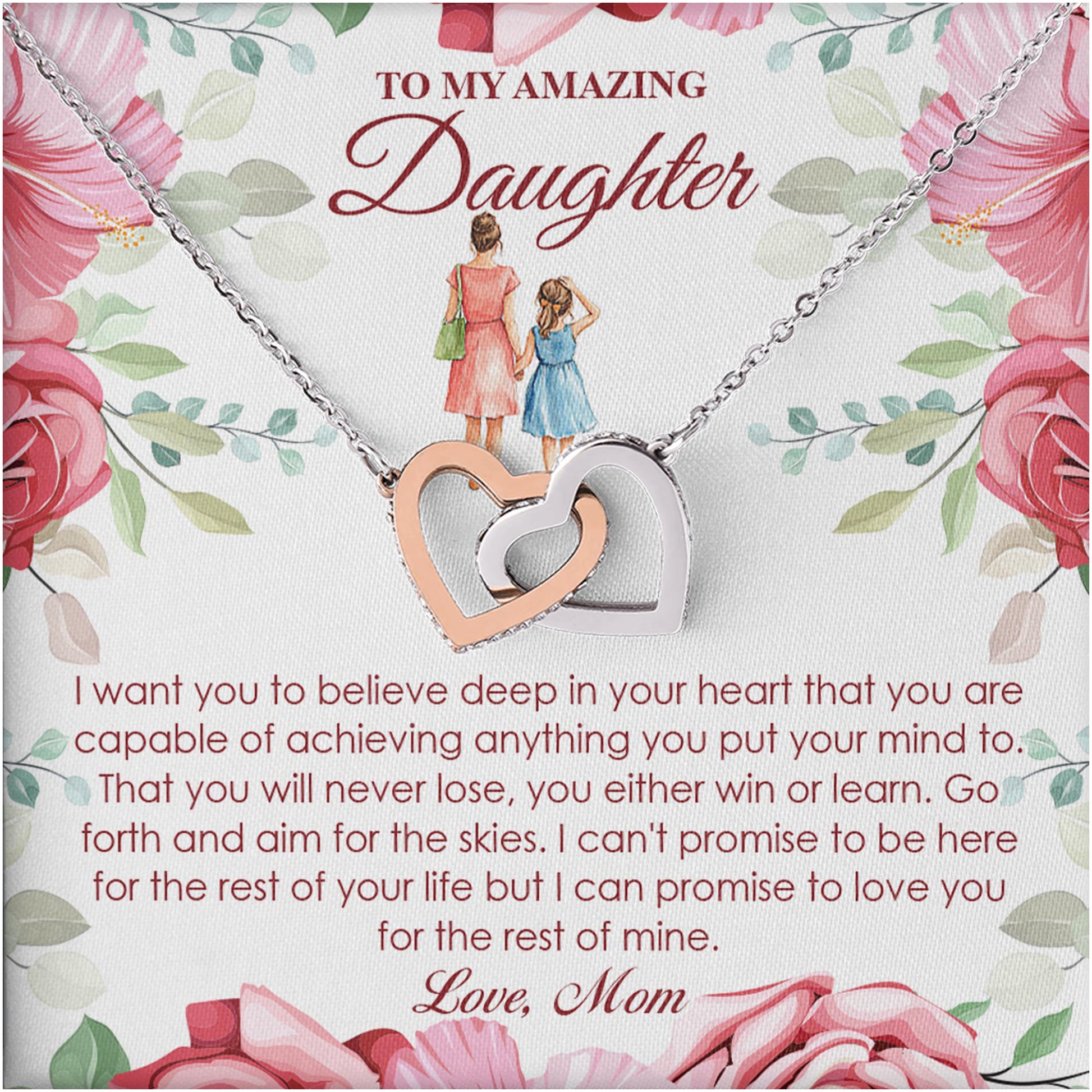 Netecom Personalized To My Amazing Daughter Necklace from Mom, Custom Flowers Message Card with Name, Interlocking Heart Jewelry Gift for Birthday, Christmas