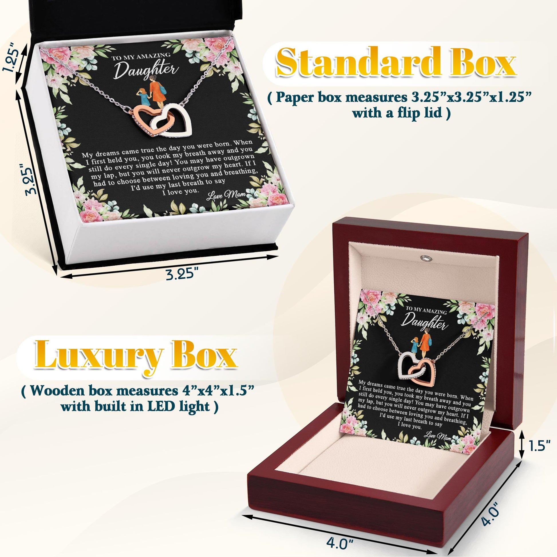 Netecom Personalized To My Amazing Daughter Necklace from Mom, Custom Vintage Flowers Message Card with Name, Interlocking Heart Jewelry Gift for Birthday, Christmas