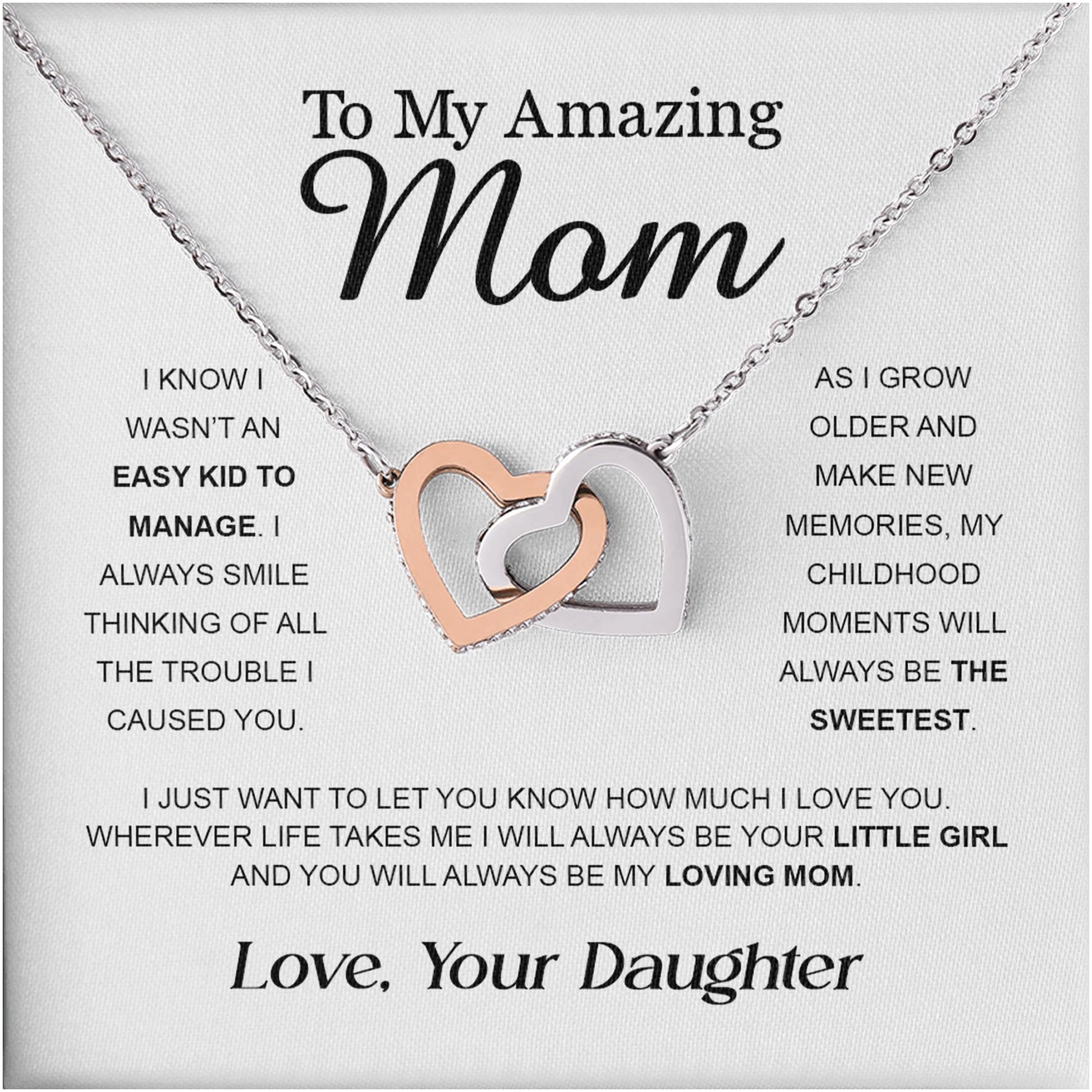 Netecom Personalized To My Amazing Mom Necklace from Daughter, Custom Message Card with Name, Interlocking Heart Jewelry Gift for Birthday, Christmas