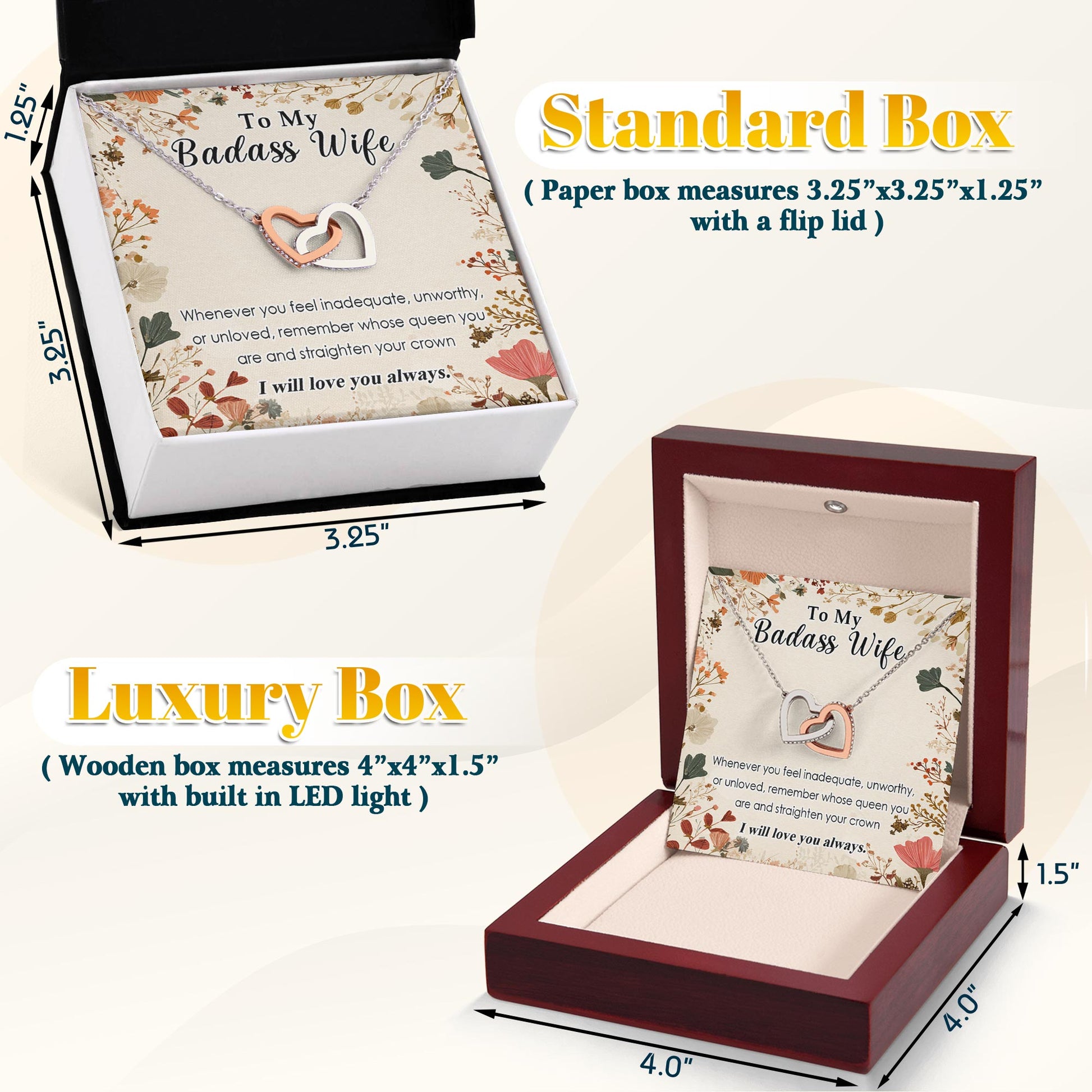 Netecom Personalized To My Badass Wife Necklace from Husband, Custom Message Card with Name, I Will Love You Always Interlocking Heart Jewelry Gift for Birthday, Christmas