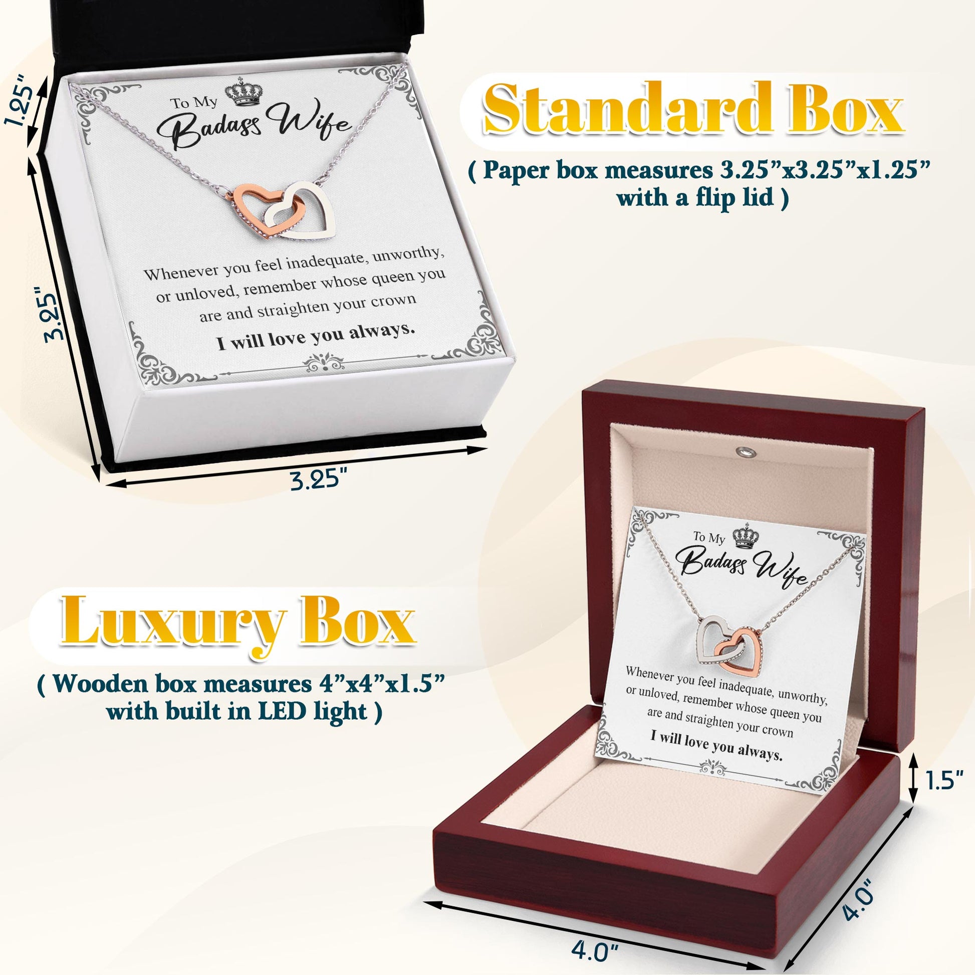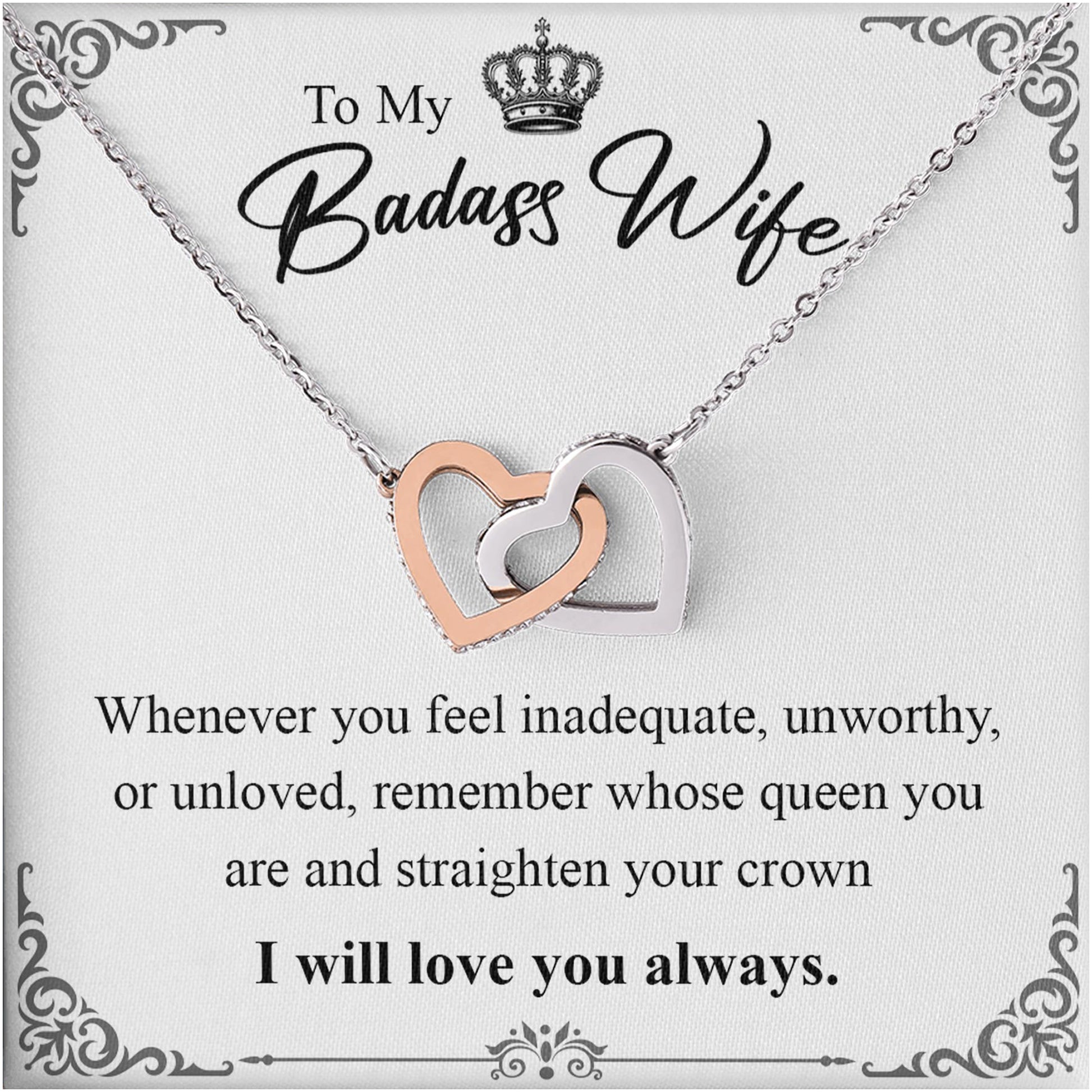 Netecom Personalized To My Badass Wife Necklace from Husband, Custom Message Card with Name, Interlocking Heart Jewelry Gift for Wedding, Birthday, Christmas