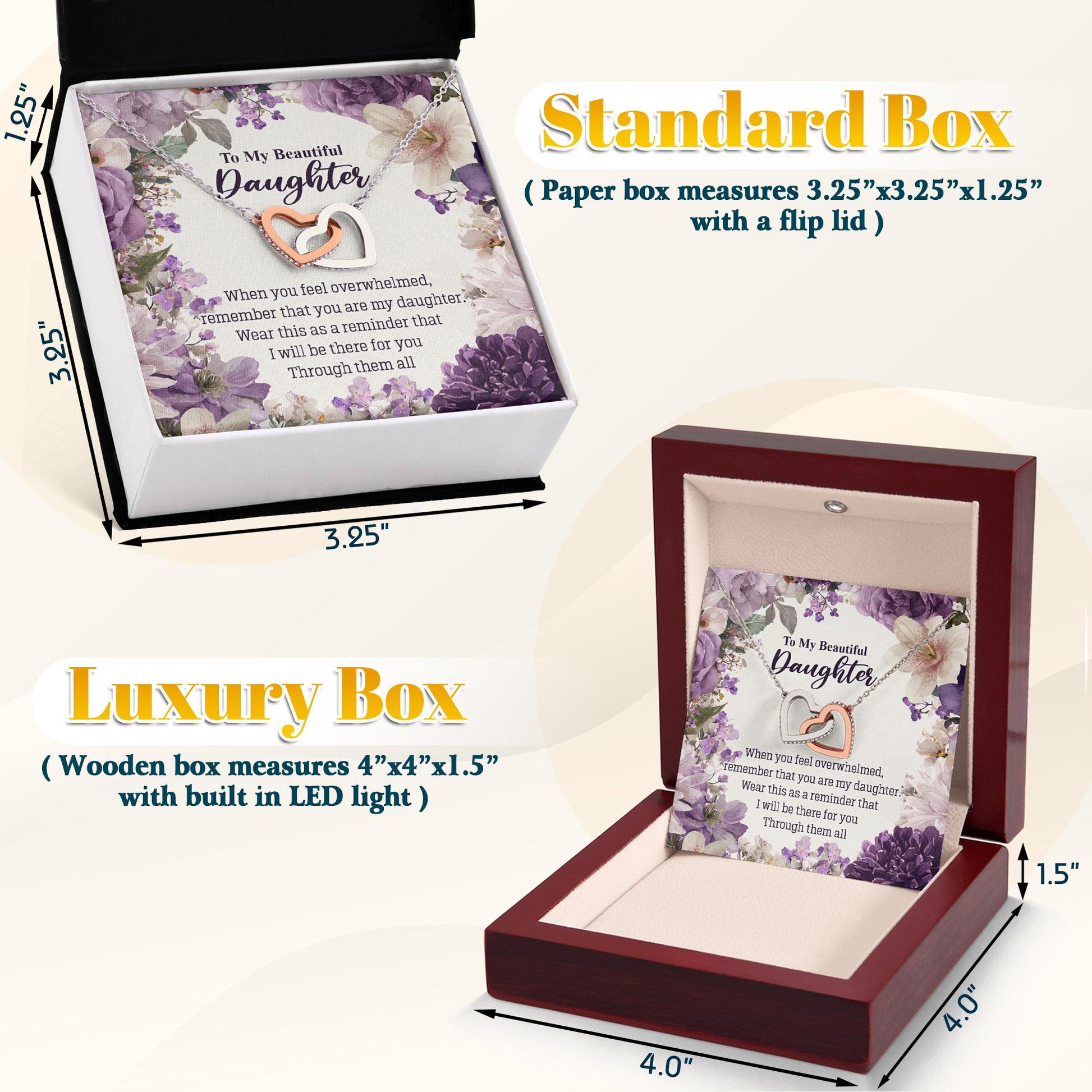 Netecom Personalized To My Beautiful Daughter Necklace from Mom Dad, Custom Message Card with Name, Remember That You Are My Daughter Interlocking Heart Jewelry Gift for Birthday, Christmas