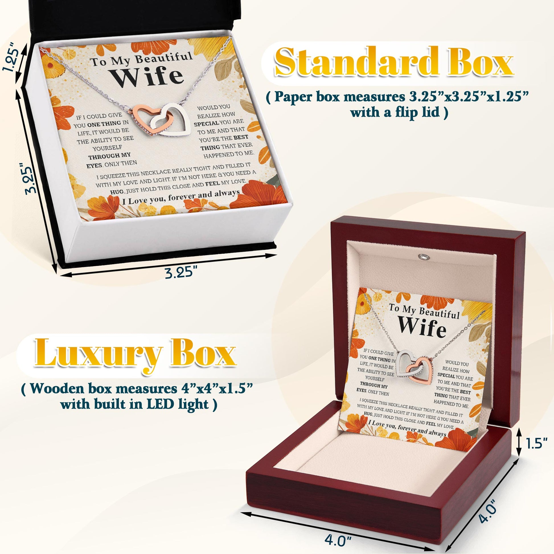 Netecom Personalized To My Beautiful Wife Necklace from Husband, Custom Message Card with Name, Interlocking Heart Jewelry Gift for Couple, Wedding, Birthday, Christmas