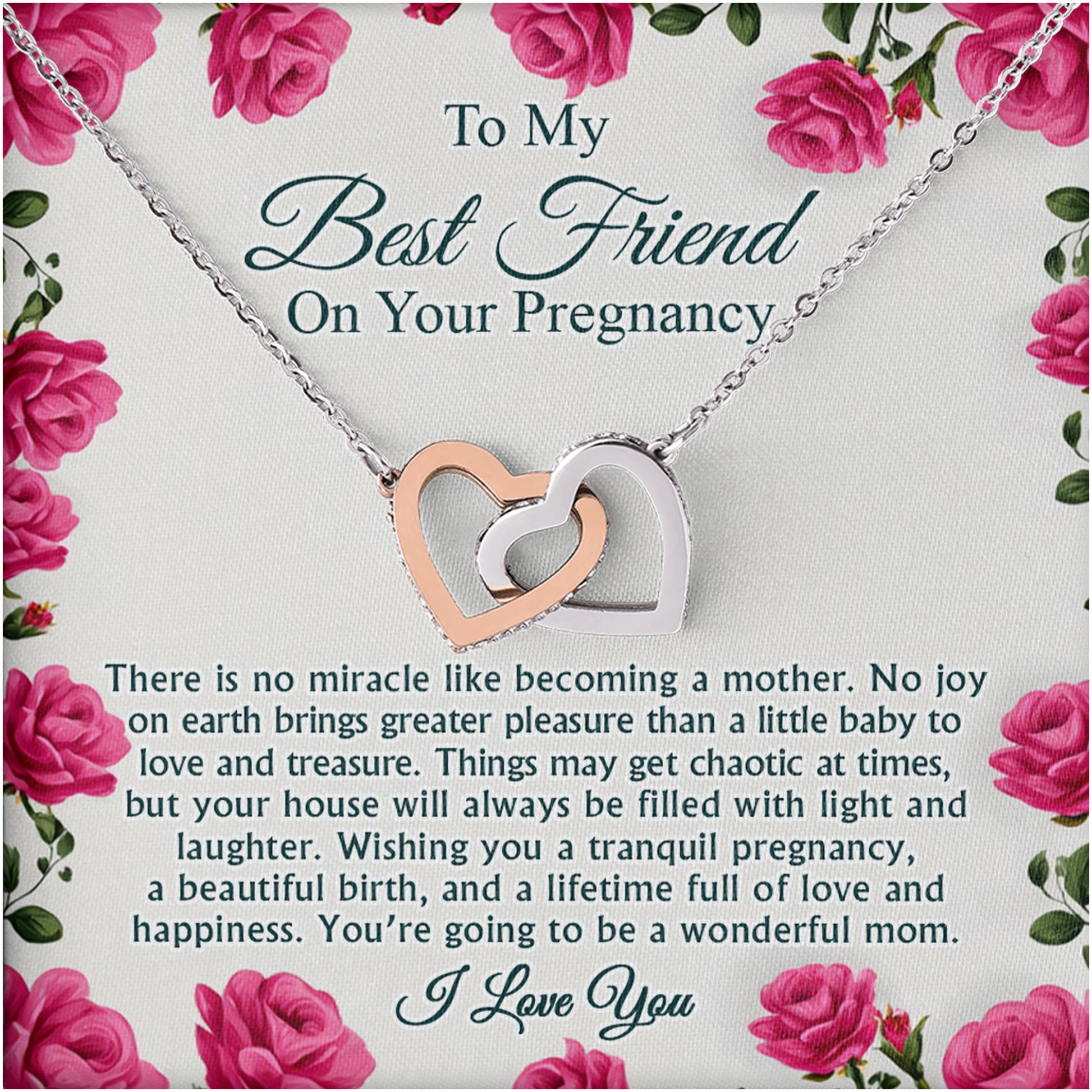 Netecom Personalized To My Best Friend Necklace, Interlocking Hearts Jewelry with Floral Card, Pregnancy Gift, Baby Shower, Mother-to-Be Gift