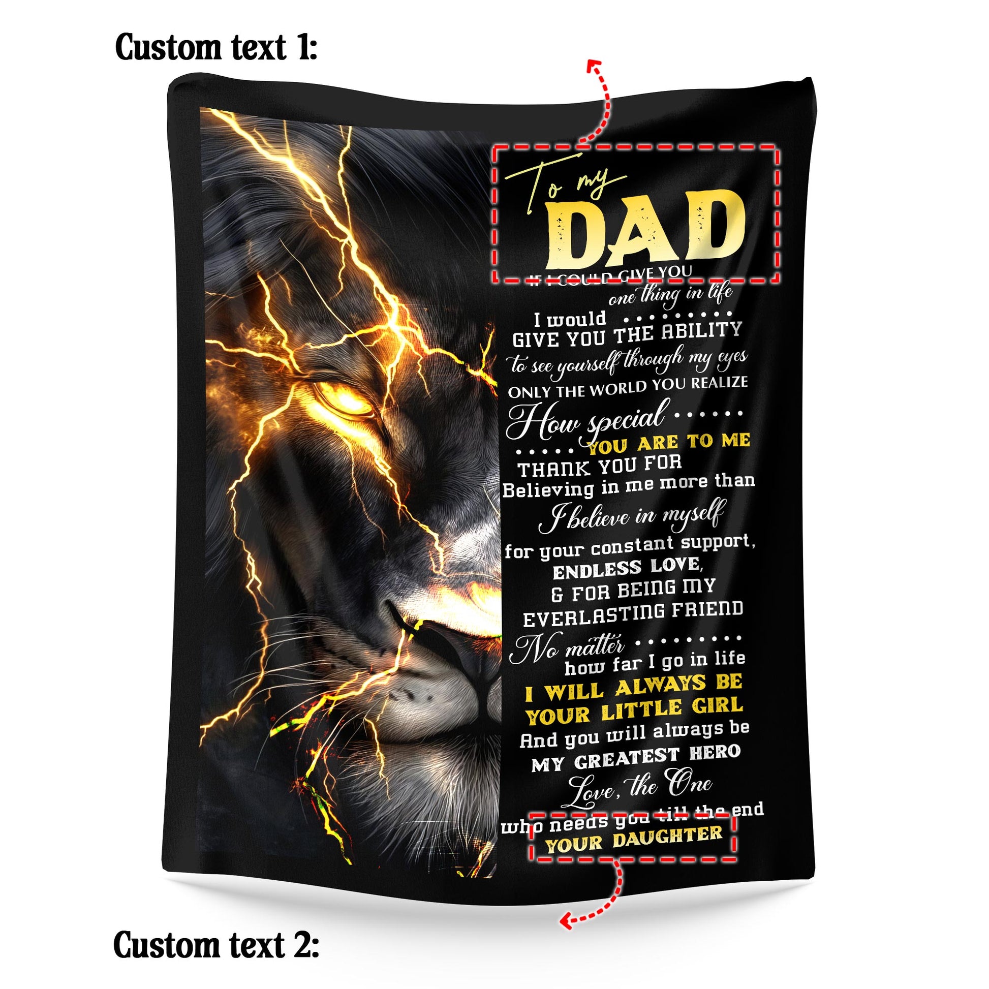 Netecom Personalized To My Dad Blanket from Daughter and Son, Fierce Lion Throw Blanket for Couch, Bed or Sofa, Ultra Soft Warm, Birthday Gifts for Dad, Christmas, Father’s Day or Anniversary