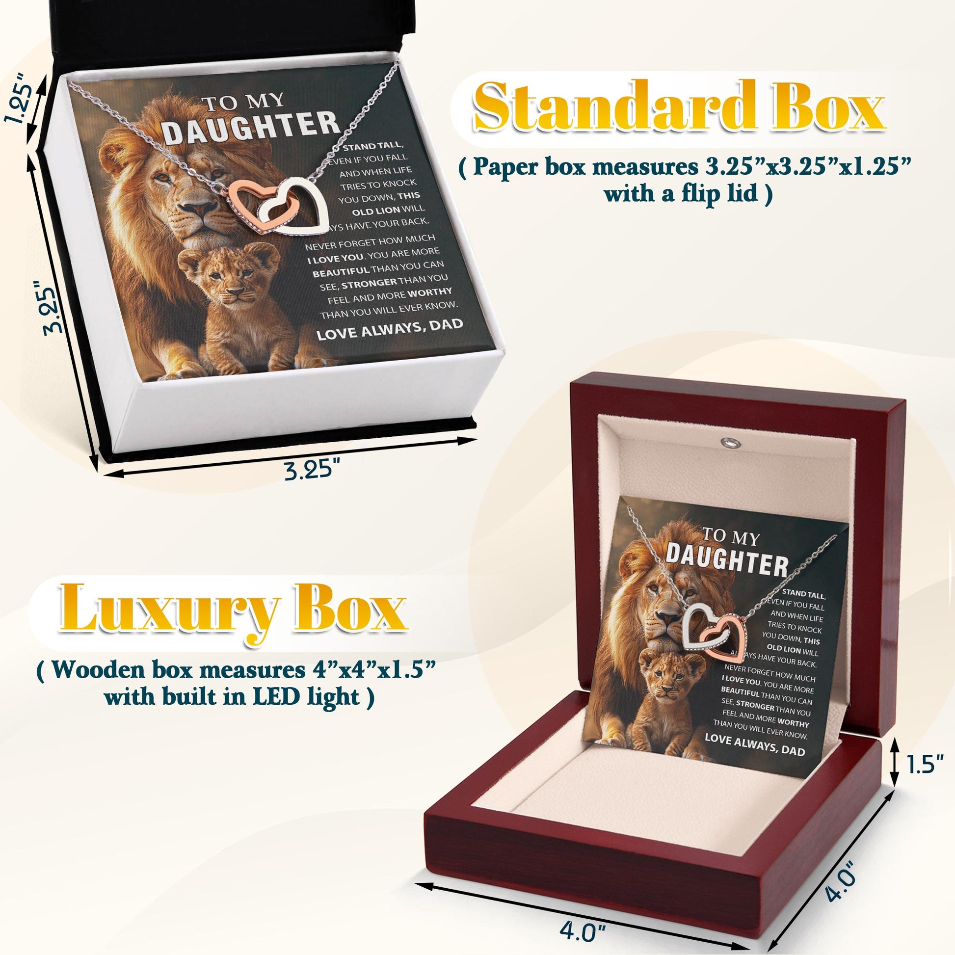 Netecom Personalized To My Daughter Necklace from Dad – Custom Message Card with Name, Lion Dad Interlocking Heart Jewelry Gift for Birthday Graduation Christmas