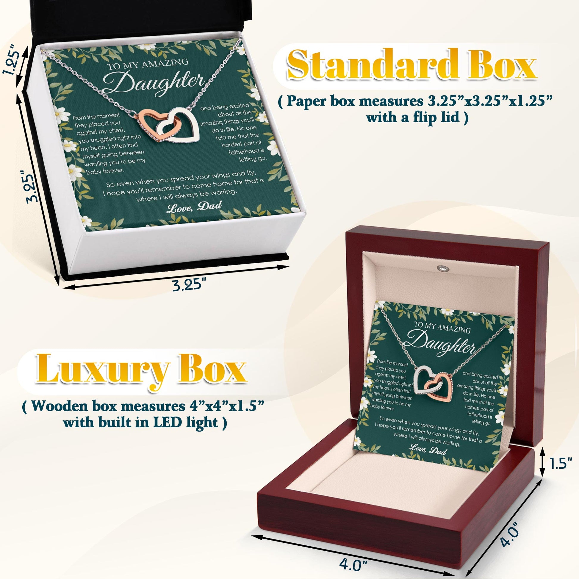 Netecom Personalized To My Daughter Necklace from Dad, Interlocking Hearts Jewelry with Green Floral Card, Birthday, Graduation, Christmas Gift